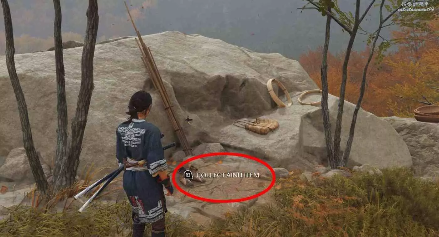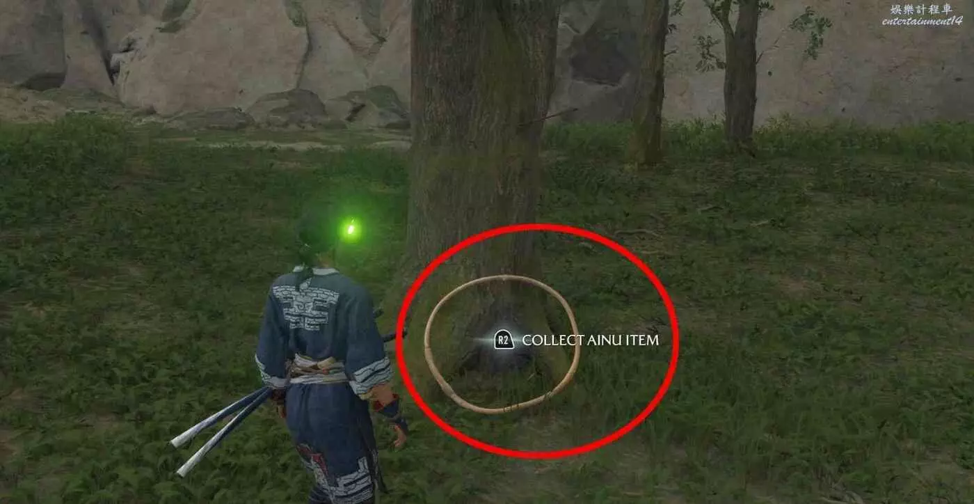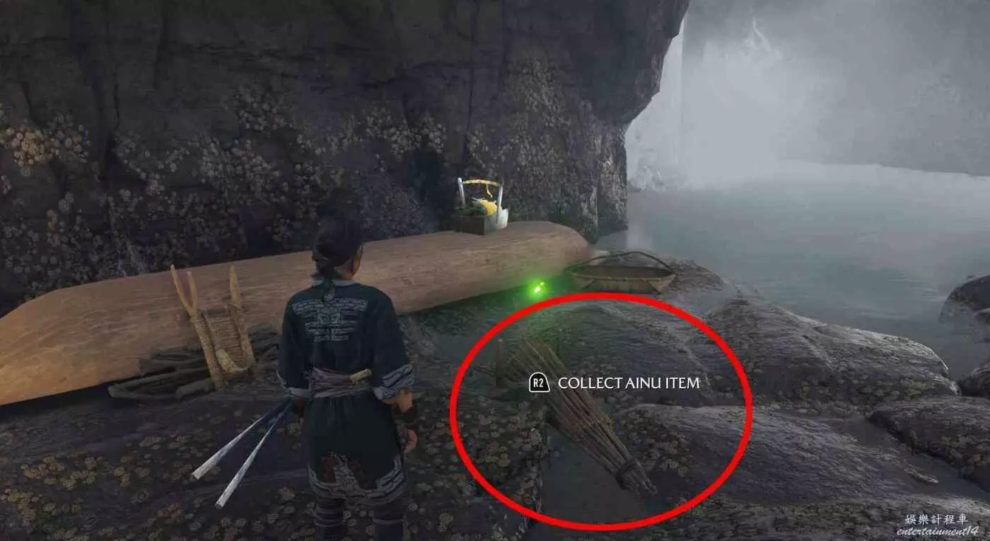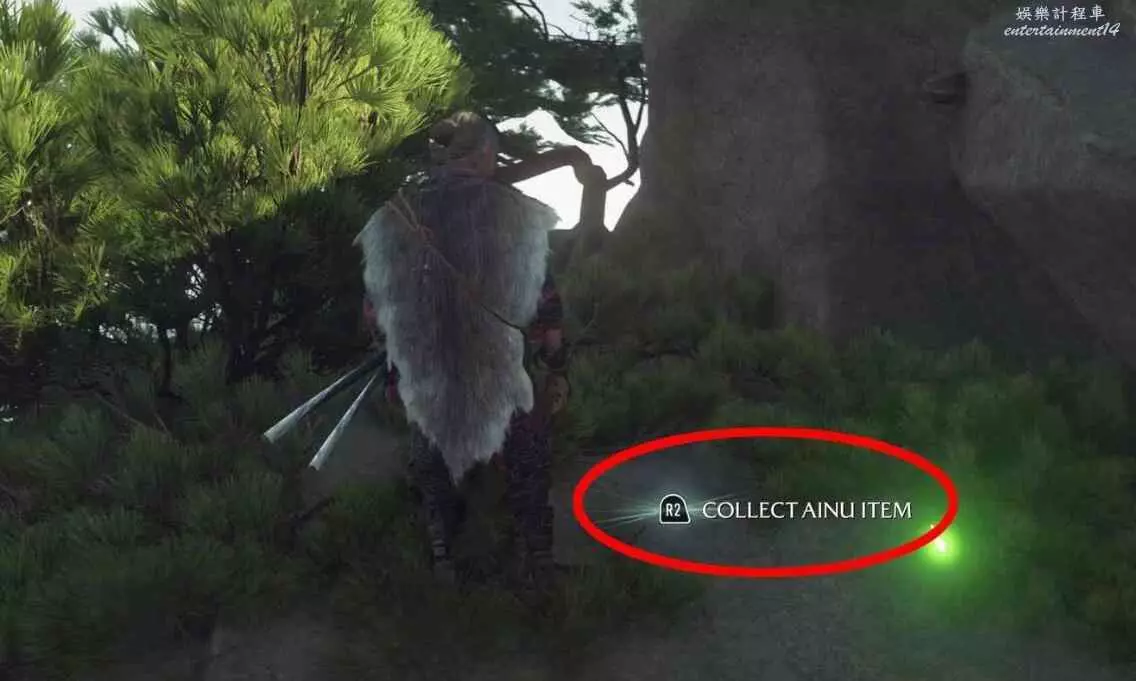 位於標記地點【竹岩】,快速傳送至竹岩後阿伊努物品就在當前位置正前方。