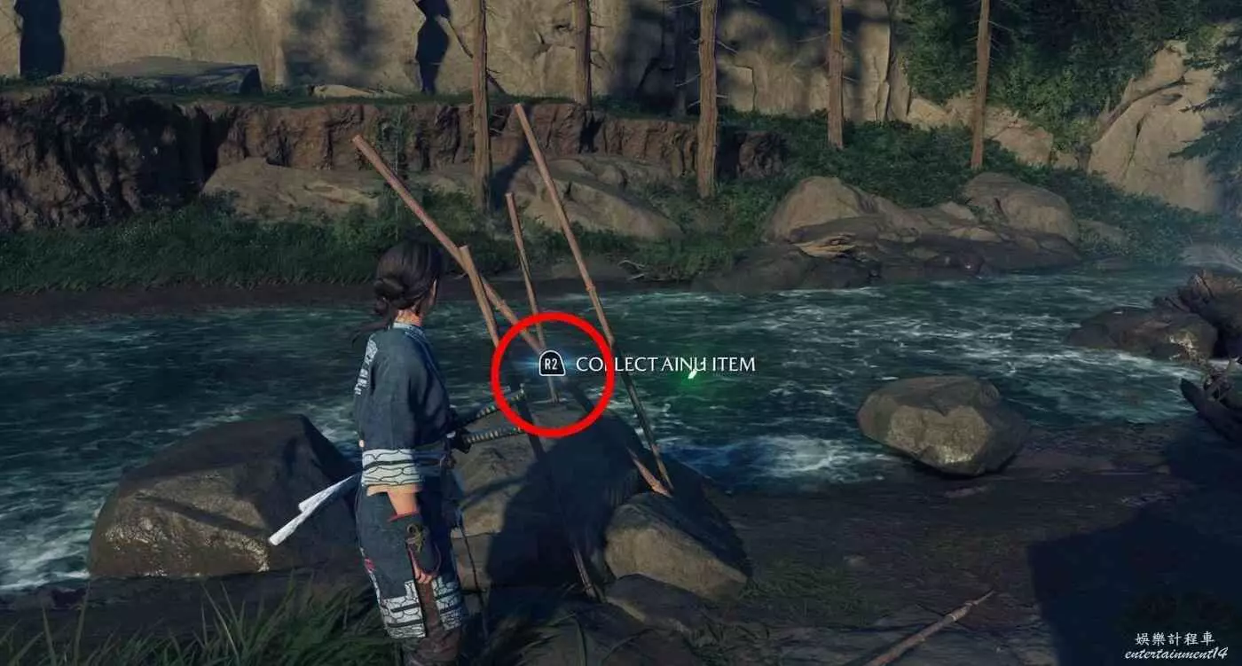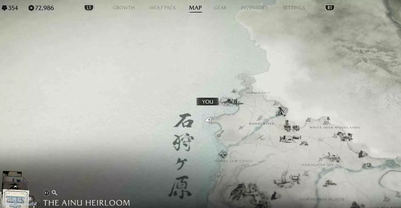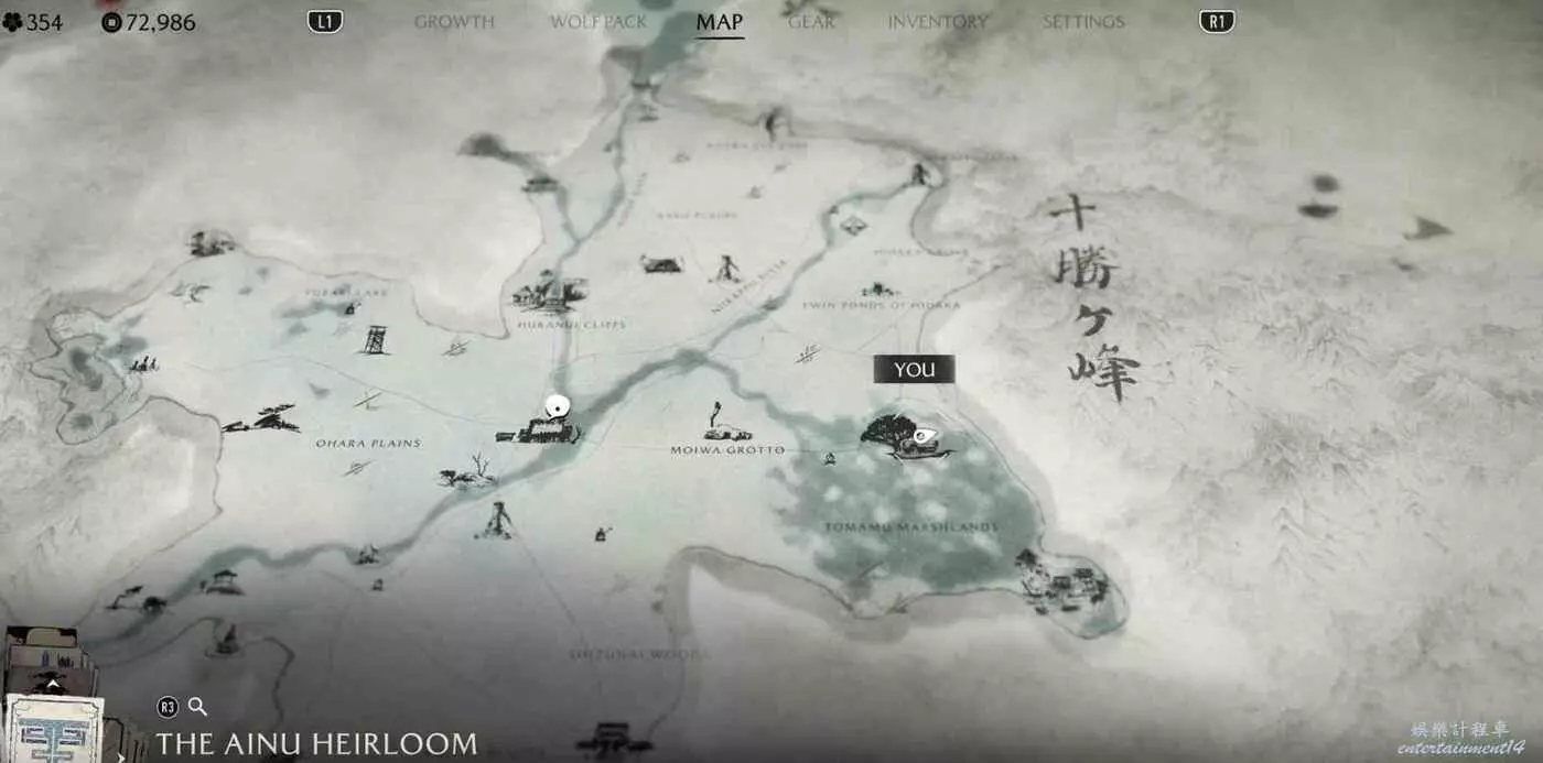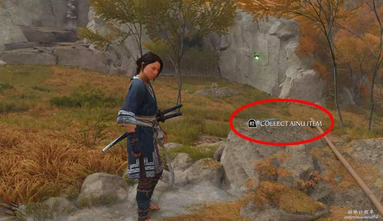 位於標記地點【竹岩】,快速傳送至竹岩後阿伊努物品就在當前位置正前方。