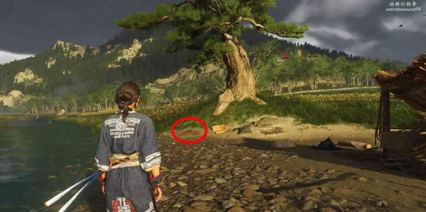 齋藤募兵營地北邊,瀑布左側樹下。