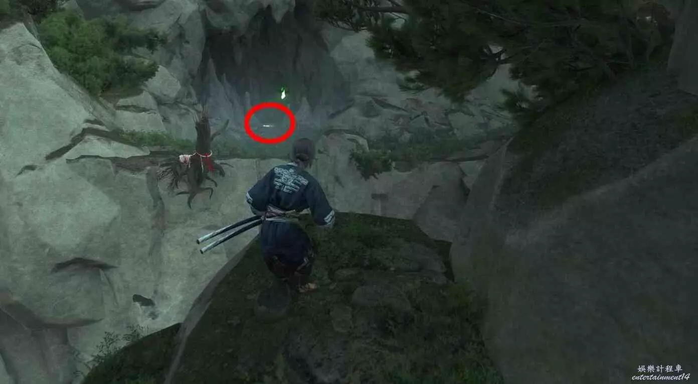 地圖上【豬目洞穴】的【穴】字所在位置的懸崖頂端樹下。