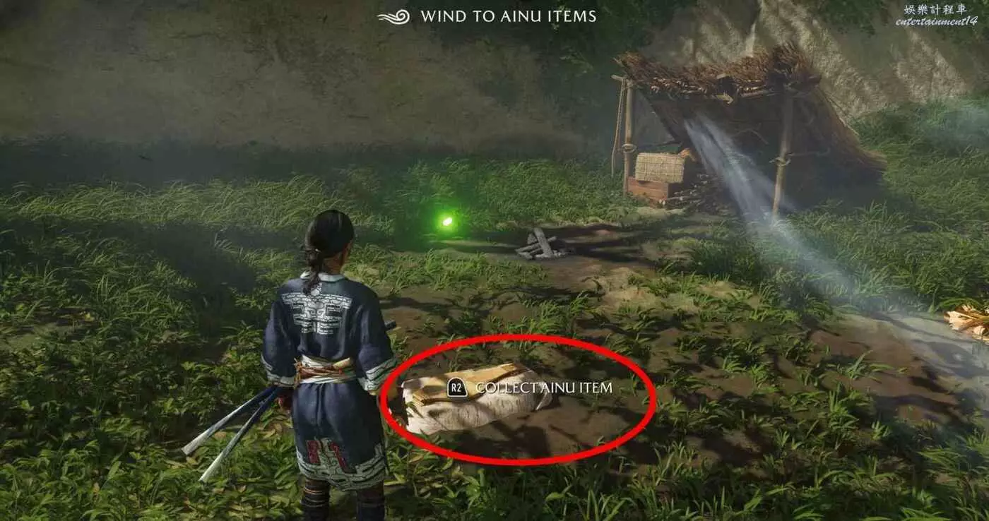 裝備該長袍後,附近有阿伊努物品時,綠色螢火蟲會為你指引方向。另外,彈奏阿伊努之曲,風將自動引領你找到最近物品。