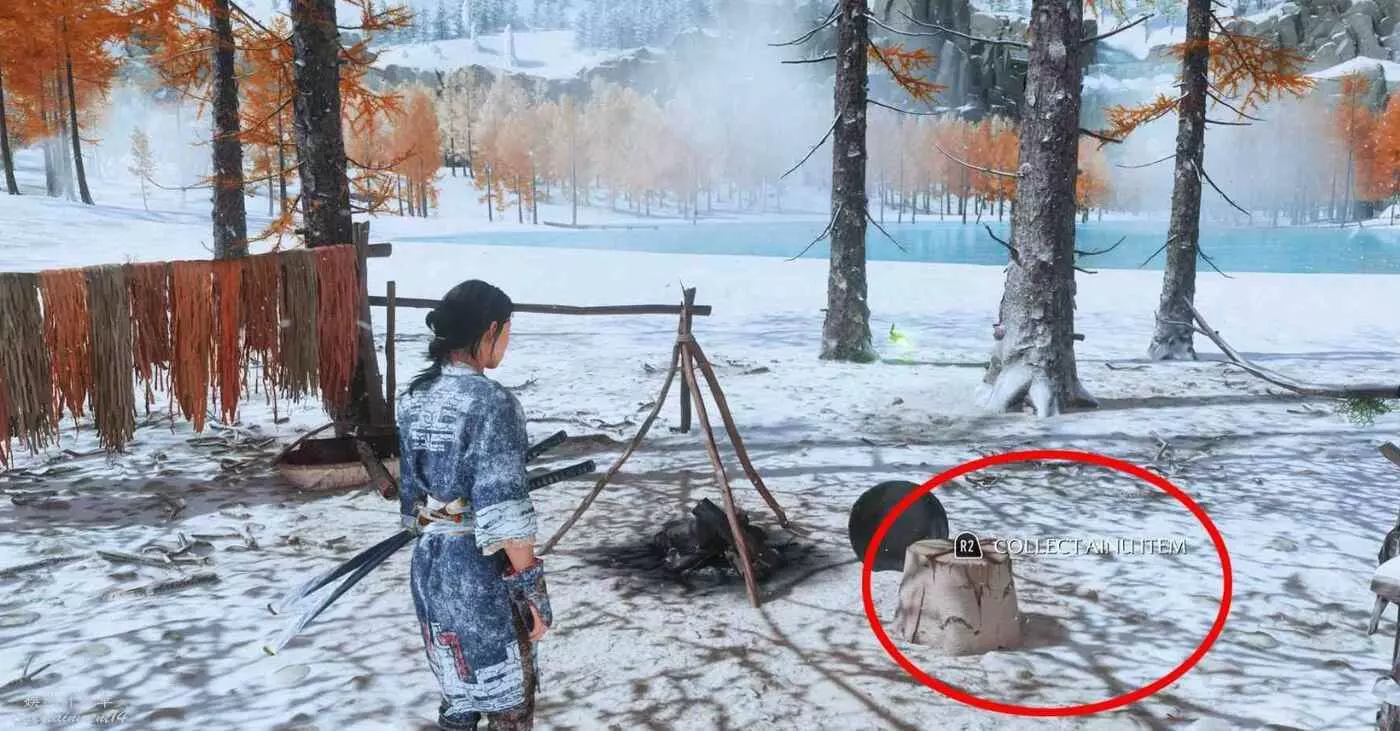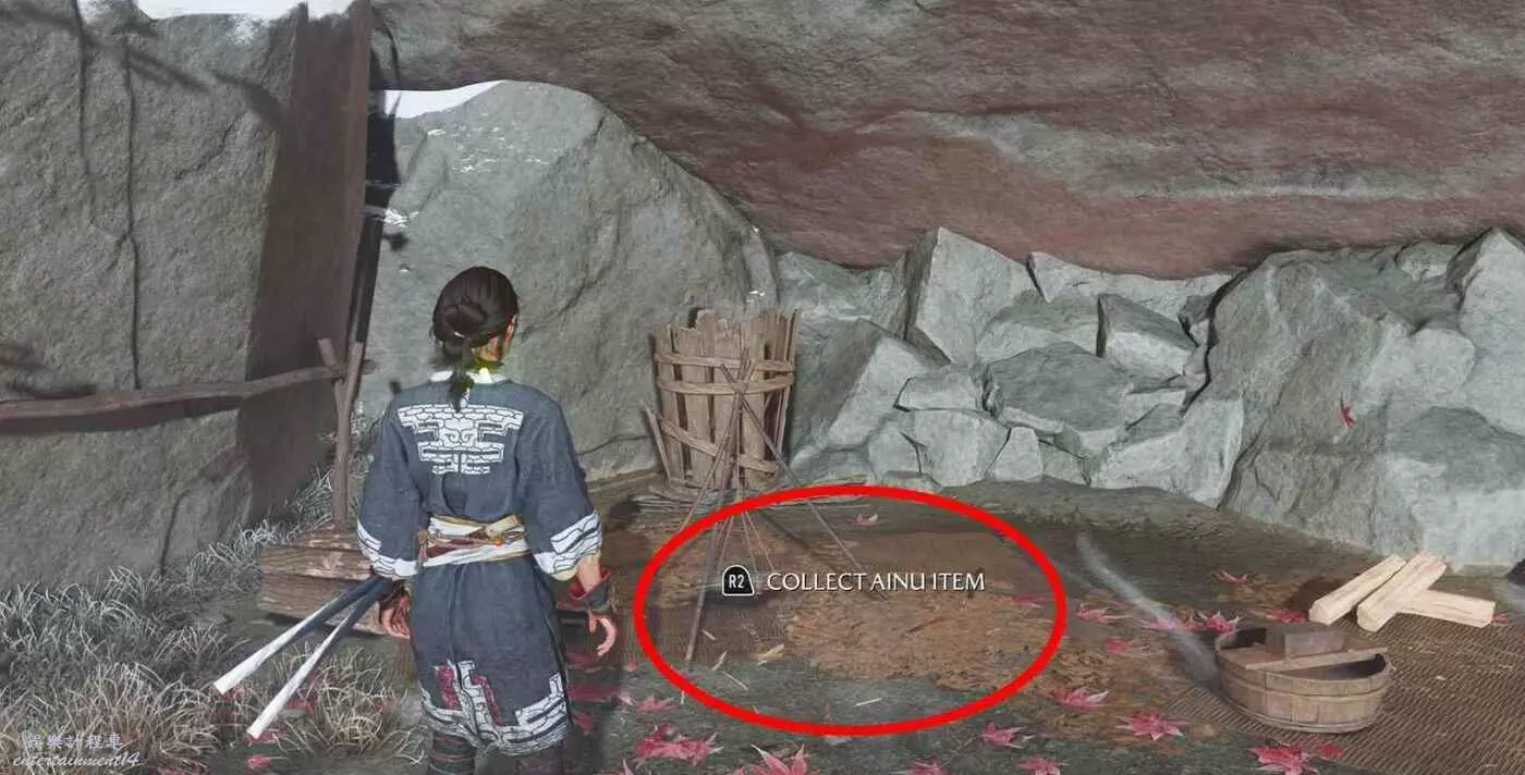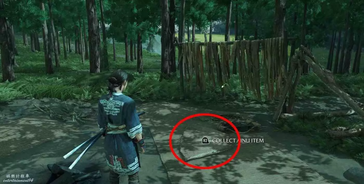 在努普魯川河岸小營地,大樹下檢查落葉堆能獲得【阿伊努工藝品】,打開物品欄,在關鍵物品裡查看此物品。
