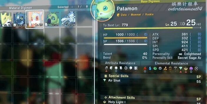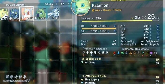 素材數碼獸累積屬性高,被強化數碼獸就能獲相應提升。