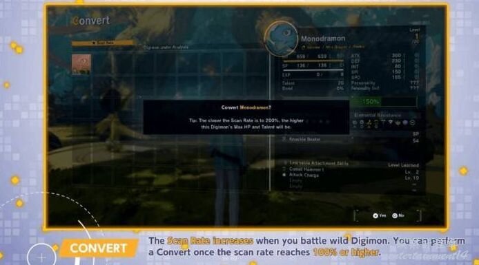 目標數碼獸可獲得額外屬性,天賦值也會提升,還能得到更多經驗值加速成長,甚至有機會獲得附屬技能。