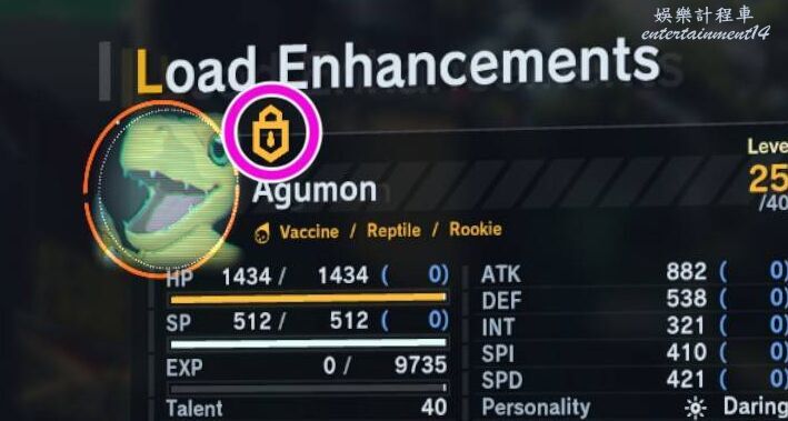 載入強化處理素材數碼獸要謹慎。在數碼獸詳情介面,按手把R3鍵或鍵盤P鍵可鎖定數碼獸。