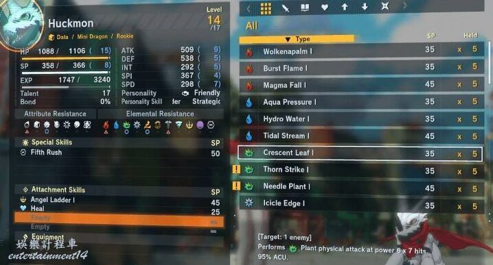 現在能通過載入數碼獸,把素材數碼獸的附屬技能轉移給主戰數碼獸。