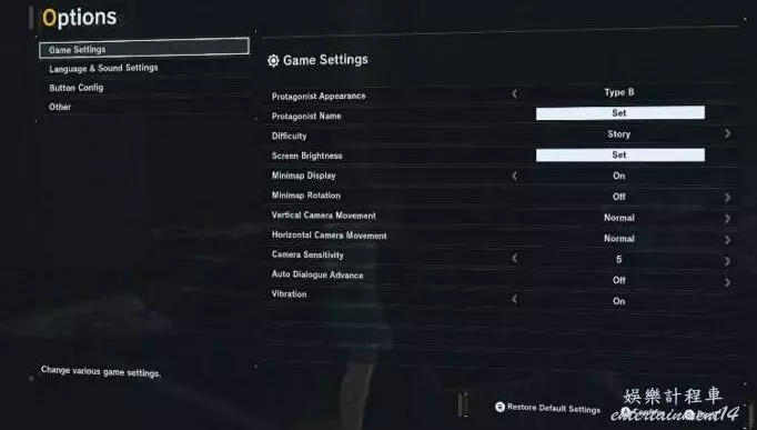 進入“系統”功能表後,選擇“選項”,接著進入“遊戲設置”介面。