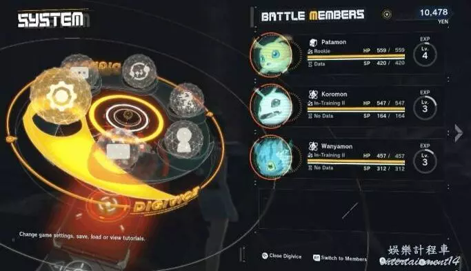 此介面會顯示“系統”“戰鬥成員”等,能在這裡調整遊戲設置、存檔、讀檔或查看教學。