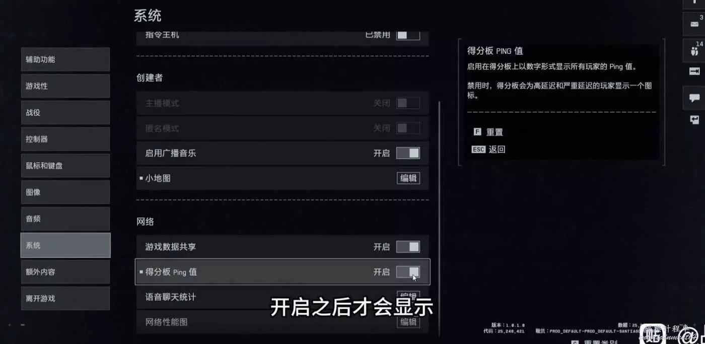 5.注意看螢幕左上角的ping卡頓提醒,前幾天肯定各種卡注意高ping