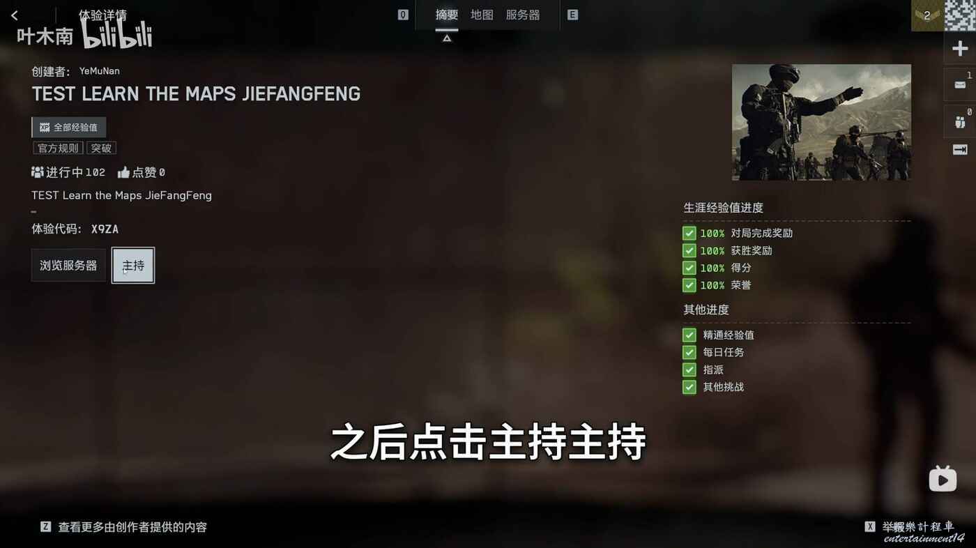 戰地風雲 6 (Battlefield 6) 刷槍代碼使用教學 11 10 月 2025-10-11 廣告 作者:葉木南 來源:bilibili 通過使用刷槍代碼可以讓玩家進入其他玩家創建的伺服器,幫助玩家刷槍。 打開遊玩-社區,然後點擊搜索體驗。 進入後在左側下方的輸入框可以輸入代碼,然後搜索,這裡提供UP主的代碼:x9za 然後便會出來創建者的體驗伺服器。 進入伺服器,點擊主持,主持就是玩家自己來當服主。 然後建議大家設置一個密碼,然後持續伺服器這個選項不要開。