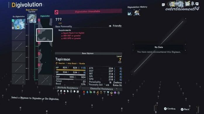 比如把新秀數碼寶貝進化為冠軍數碼寶貝,就要求特工等級達到3。