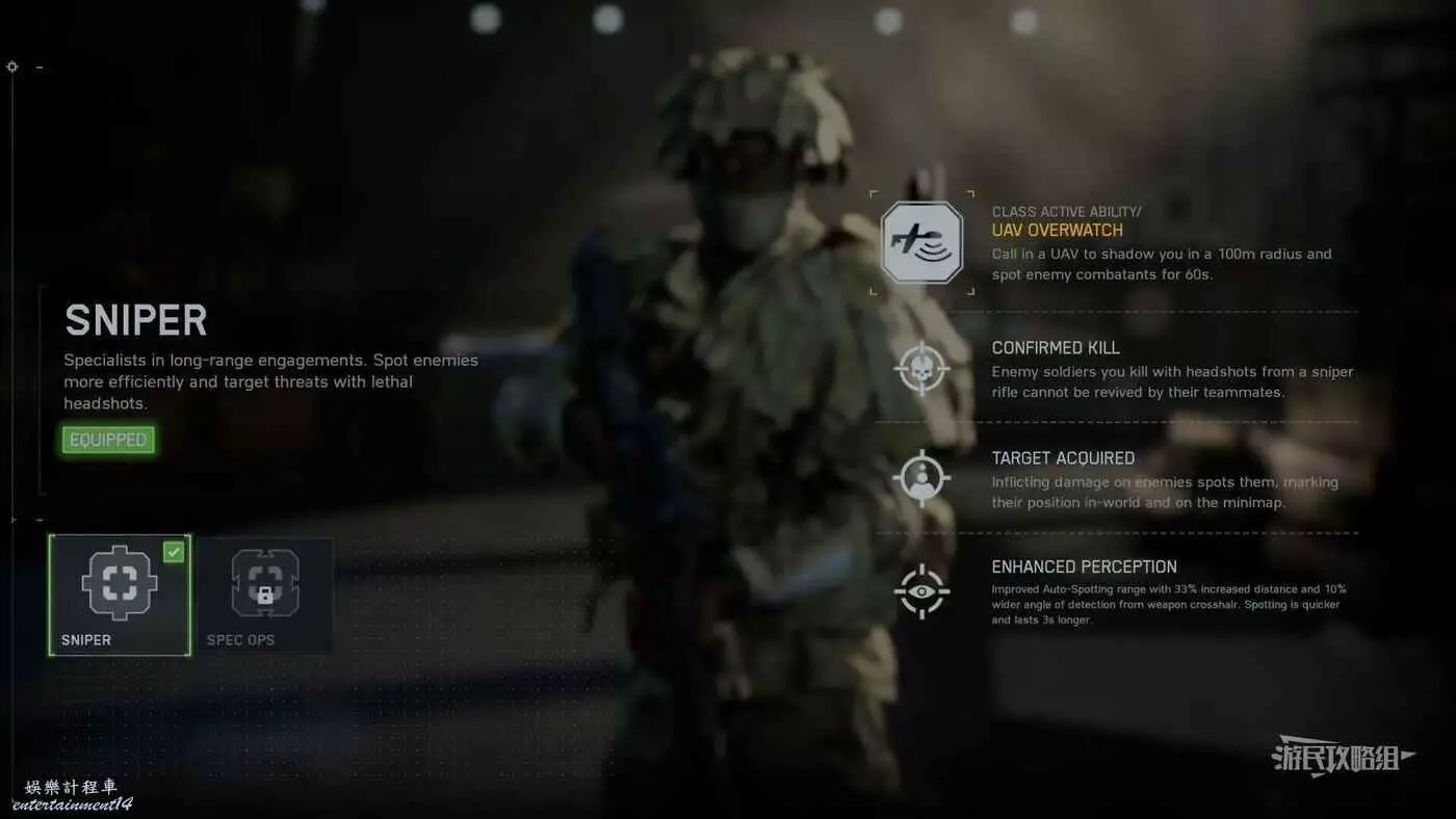 通過特定技能可以強化自動標示能力。以偵察兵為例,選擇【狙擊手訓練之路】可以啟動【強化感知】技能:自動標示範圍提升,距離增加33%,武器準星檢測角度增加10%,並且標示速度增加,持續時間延長3秒。該技能還會確保所有被玩家擊傷的敵人無論距離遠近都會自動附加標記。其他兵種也具備類似強化技能,建議根據常用的兵種查看對應的訓練之路與配備,探索能為團隊獲取更多情報的搭配方案。