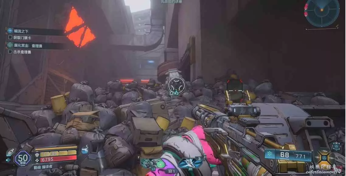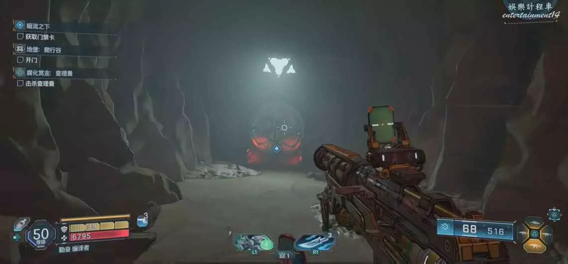 接著拾取道具,想著箭頭反向前進炸開大門即可