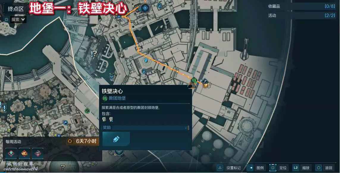 視角後移,向箭頭方向出發,一直往裡走就可以看到大門了