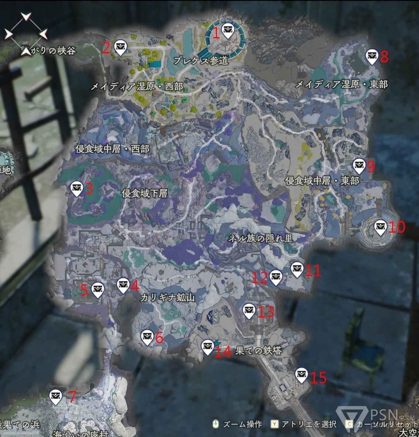 這個遊戲圖2大部分地點都需要切彈,很多的寶箱,機關都需要切彈才能拿,拿到切彈前很多寶箱,機關開不了,非常的噁心。所以圖2最好先直奔開拓課題100%,拿到切彈獎勵再開始探圖,其中最麻煩的是5個傳憶器,不太好找,這裡提供一下位置: