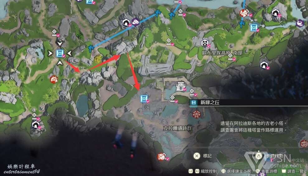 對於開放世界遊戲,迷路是一種常態,這裡發一下個人在流程中迷路的情況,提供一下參考。順便附上伊朵斯修煉地的祭壇位置,還有阿拉迪西亞射擊任務位置。