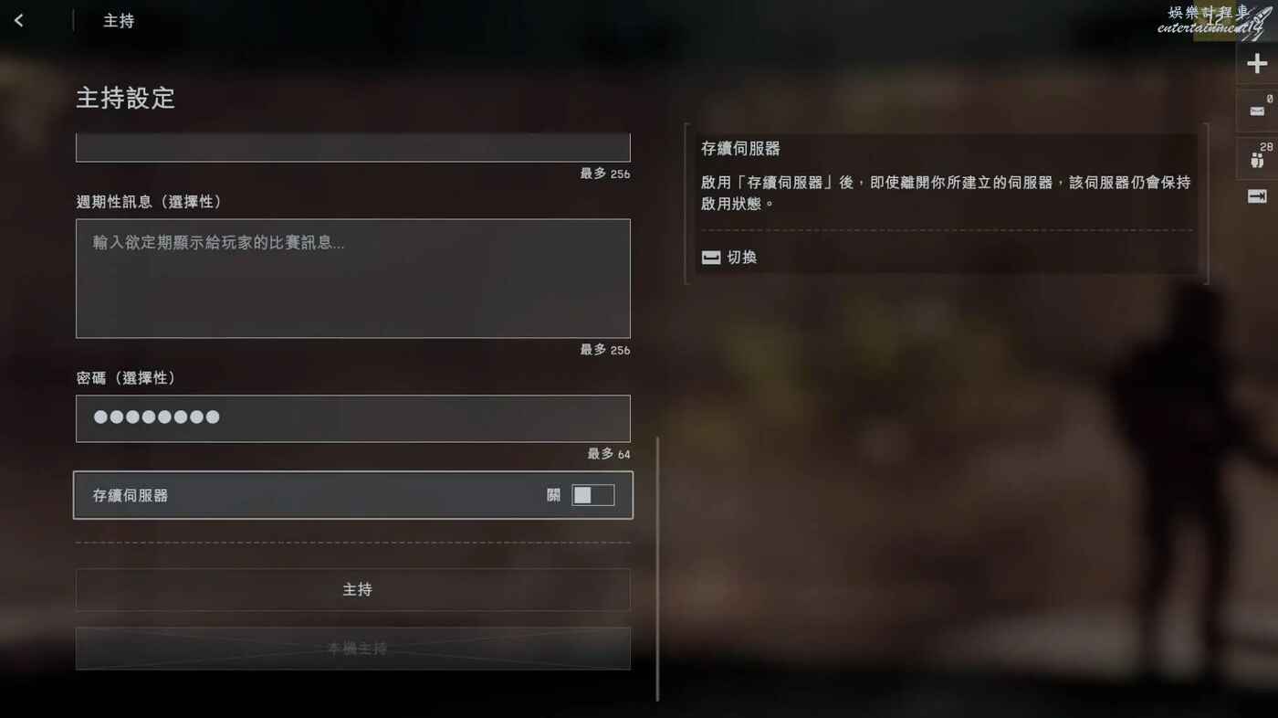存續伺服器記得關閉別打開,密碼隨便亂設定就好防止路人跑進來(你要讓人家一起進來跟你開心刷也可以?