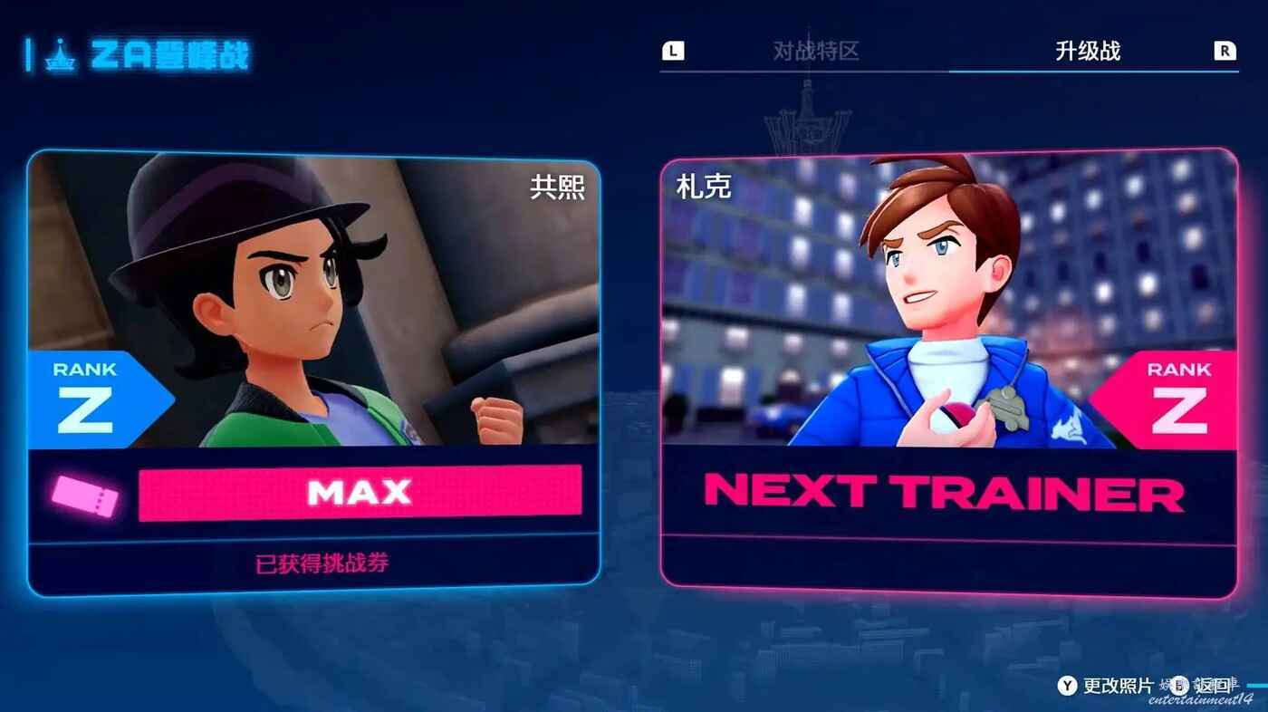 為了提高ZA登峰戰的級別,需要挑戰“升級戰”並取得勝利。在“升級戰”中,主人公會與跟自己一樣想要升級的強敵訓練家進行1對1的對戰。先好好培育寶可夢,然後再挑戰吧。