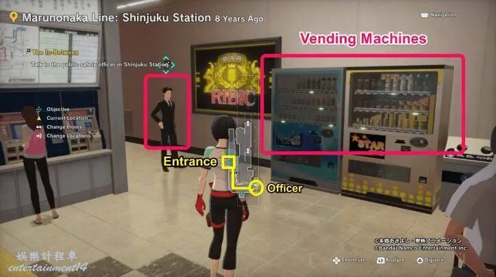 7.在地鐵中,前往地圖上公安人員的位置。你會在兩台自動售貨機附近找到他。