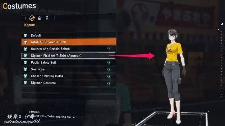 通過數碼終端的特工介面換上購買的數碼獸T恤
