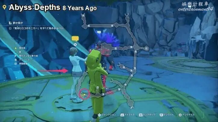 第3個標記位於《深淵底層》(8年前)。使用時躍前往《深淵海灘》(8年前),前往底層,標記位於地圖西南部。