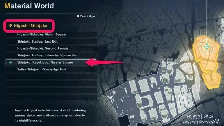 2.前往新宿:地圖上的東新宿的歌舞伎町、劇場廣場。
