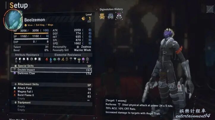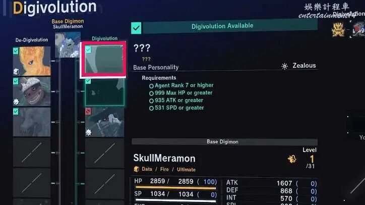 獲取別西蔔獸(若無),最快進化路線:火焰獸(Meramon)→ 骷髏火焰獸(SkullMeramon)→ 別西蔔獸(Beelzemon)