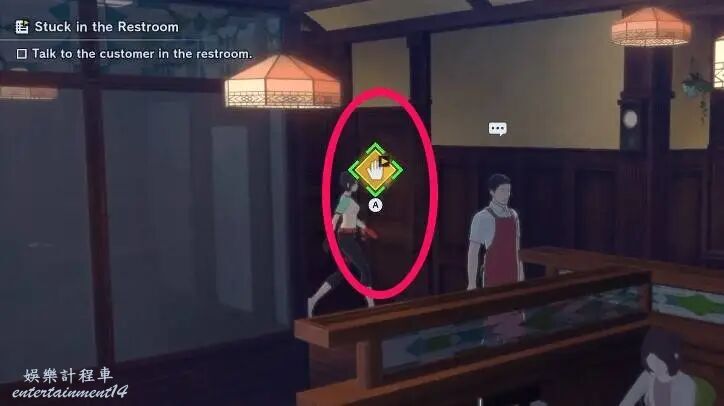 與洗手間門互動3次,嘗試與被困顧客對話(最終對話選項不會影響任務結果,可隨意選擇)
