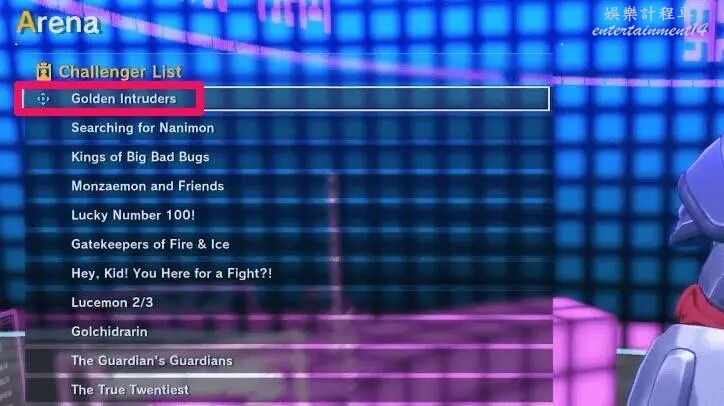 2.與火山獸對話查看競技場挑戰者名單,選擇”黃金入侵者”選項。