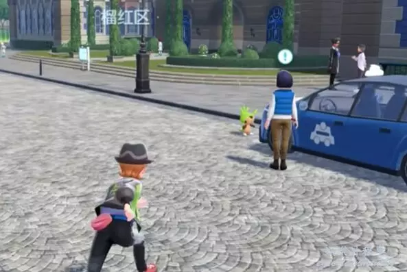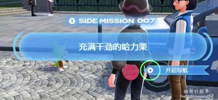 2、找到在藍色轎車前面的哈力栗,與轎車旁邊的人對話,會被要求與哈力栗戰鬥。