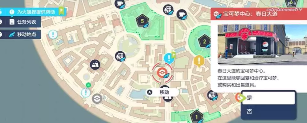 首先傳送到地圖所在位置,在寶可夢中心春日大道附近就可以觸發支線任務。