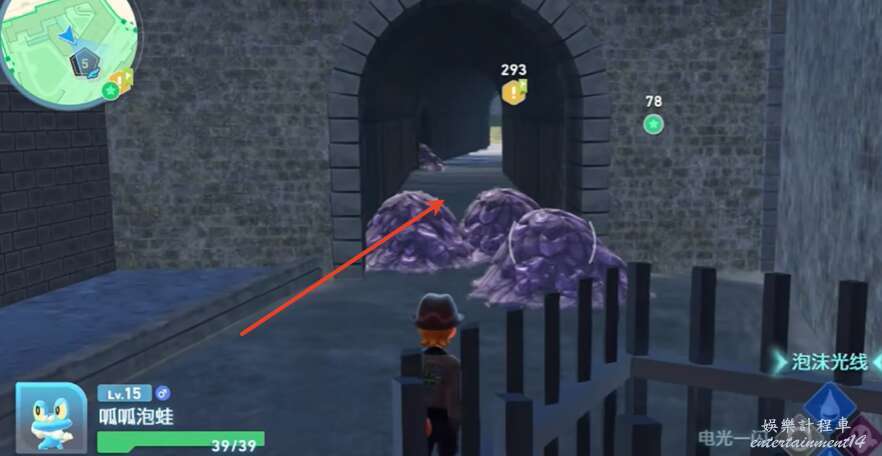 看到頭目寶可夢不要管它繼續往前,小樹枝就在附近。