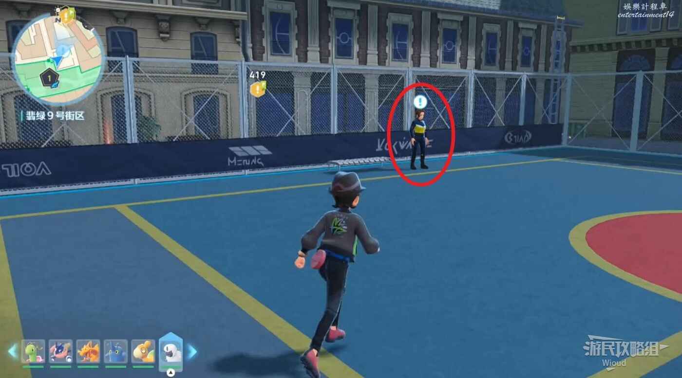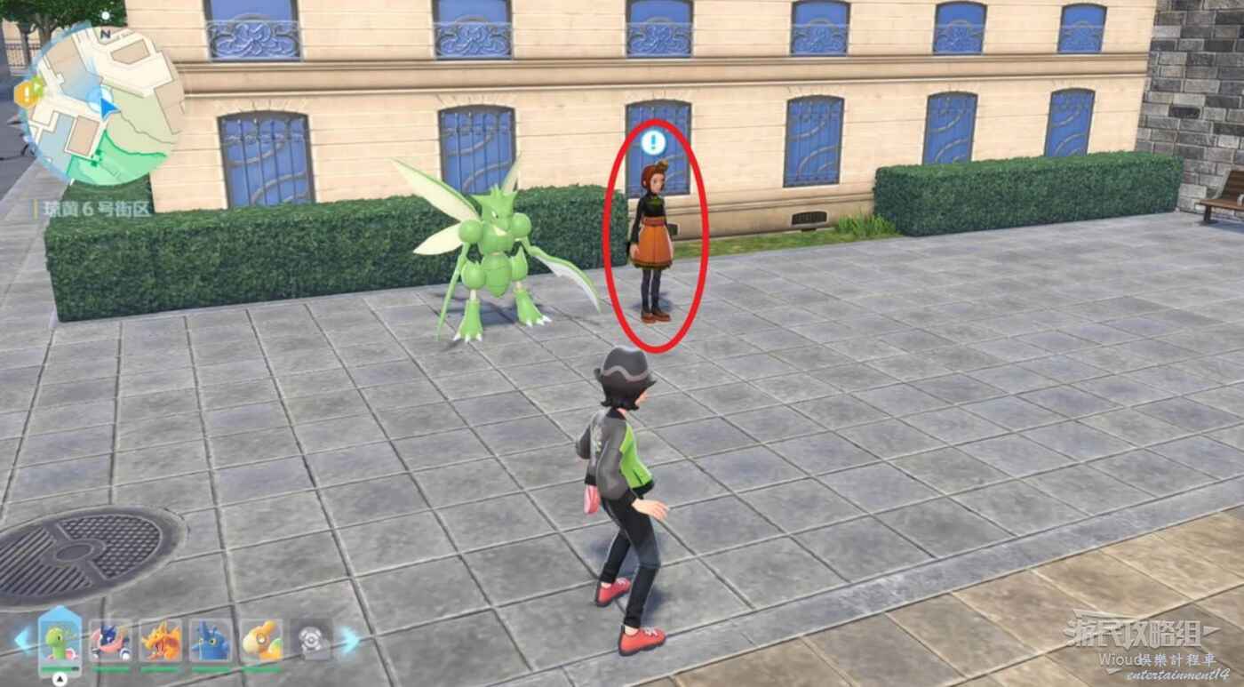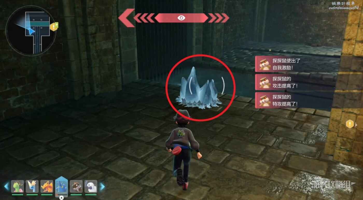 沿路往裡走,擊敗NPC的寶可夢積攢點數,按下左搖杆進入潛行狀態,然後操控寶可夢發動先行攻擊可造成大量傷害。