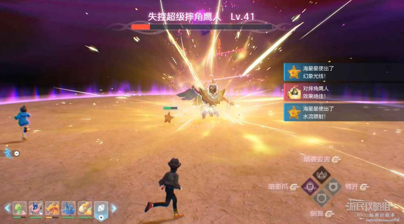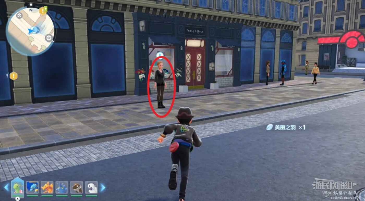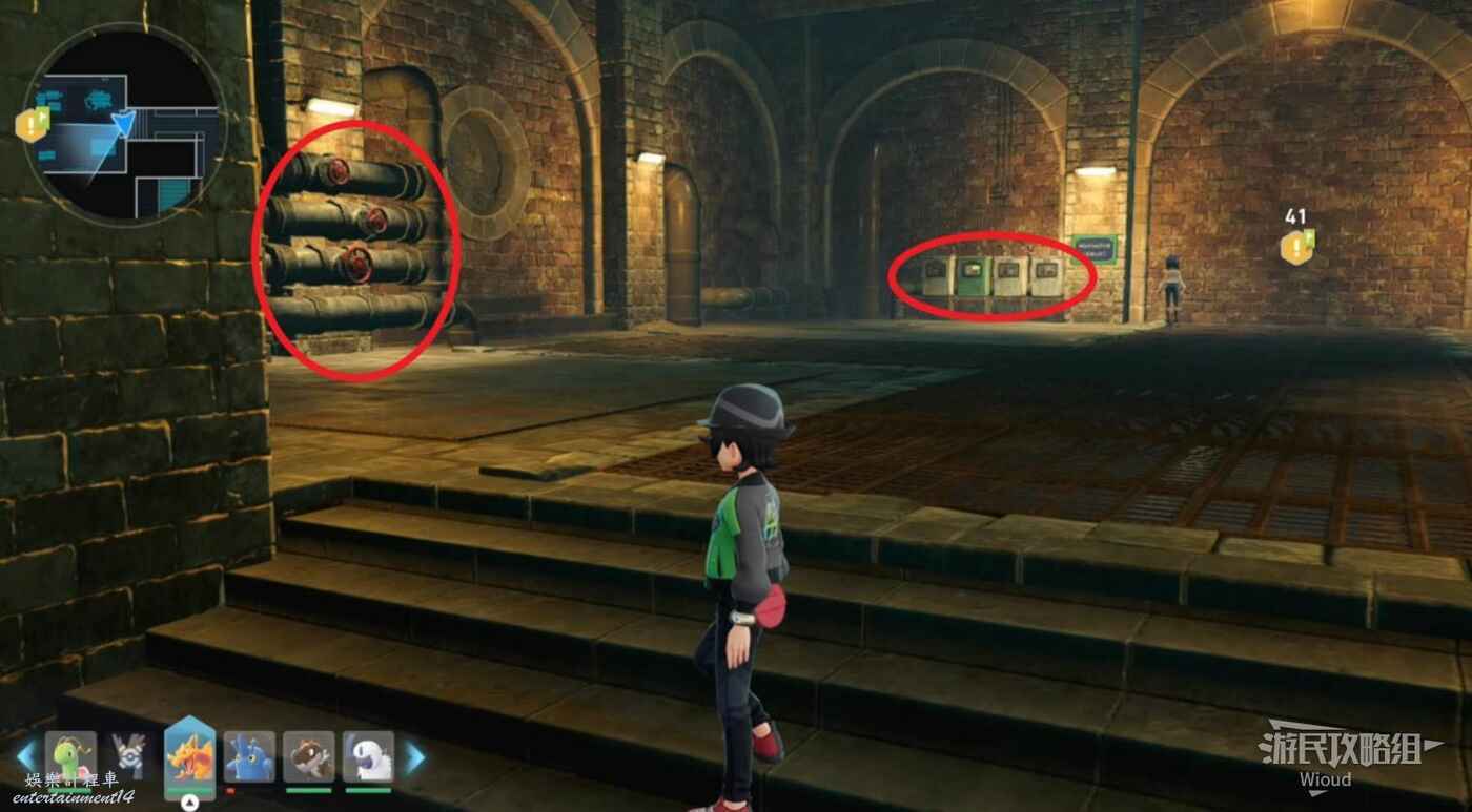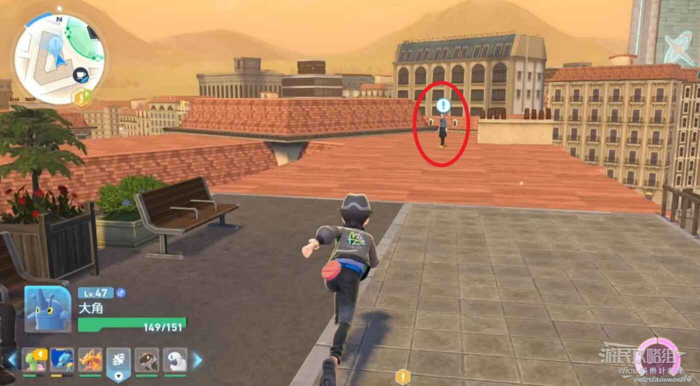 沿路往裡走,擊敗NPC的寶可夢積攢點數,按下左搖杆進入潛行狀態,然後操控寶可夢發動先行攻擊可造成大量傷害。