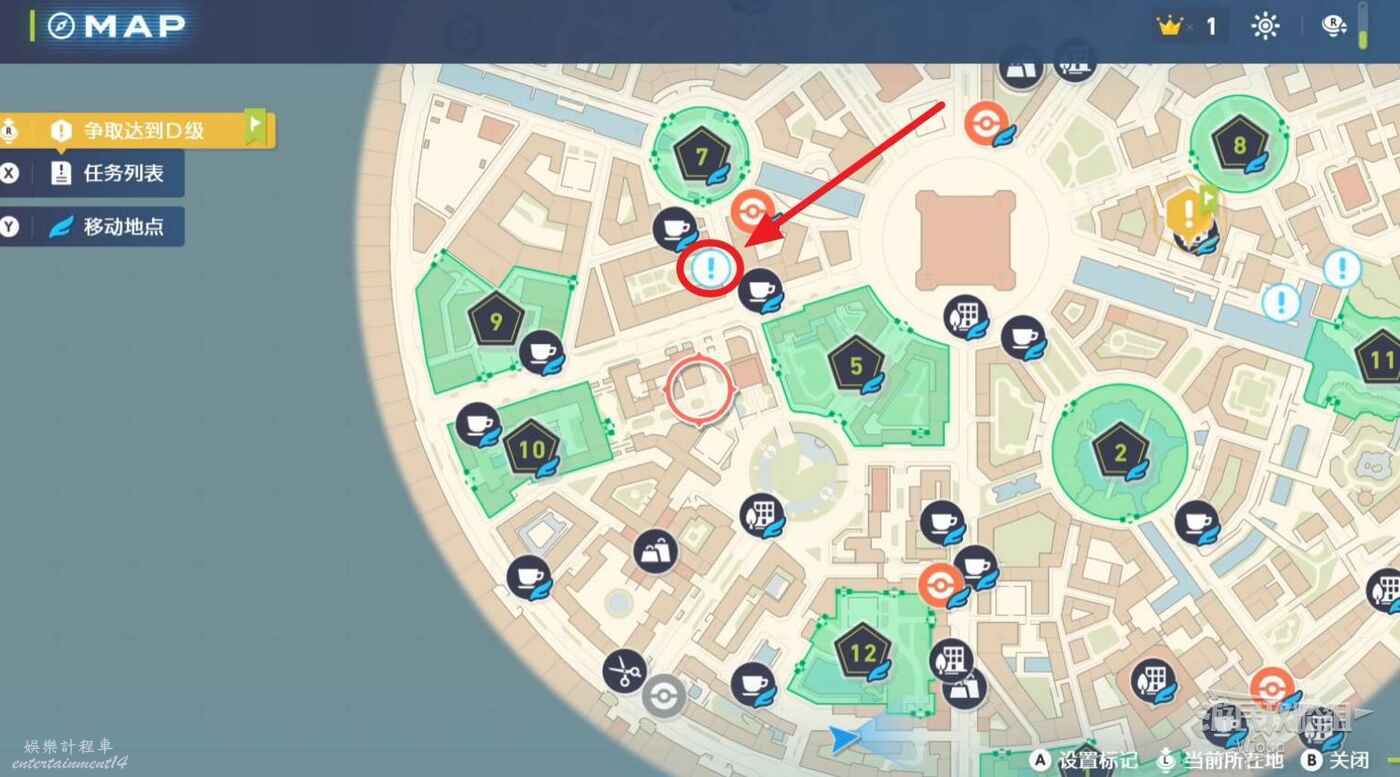 任務接取位置如下圖所示,走到1號野生特區旁的對戰場。