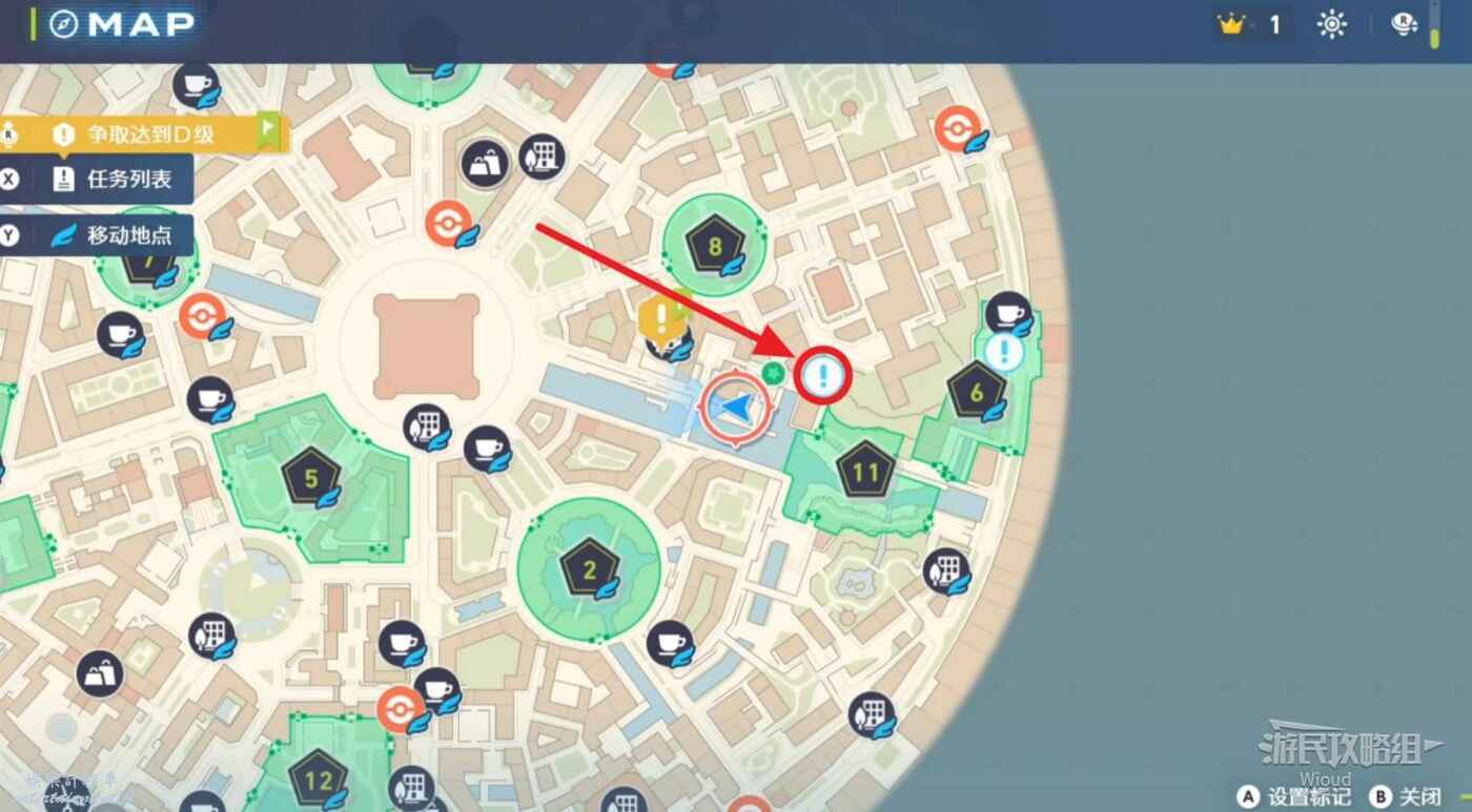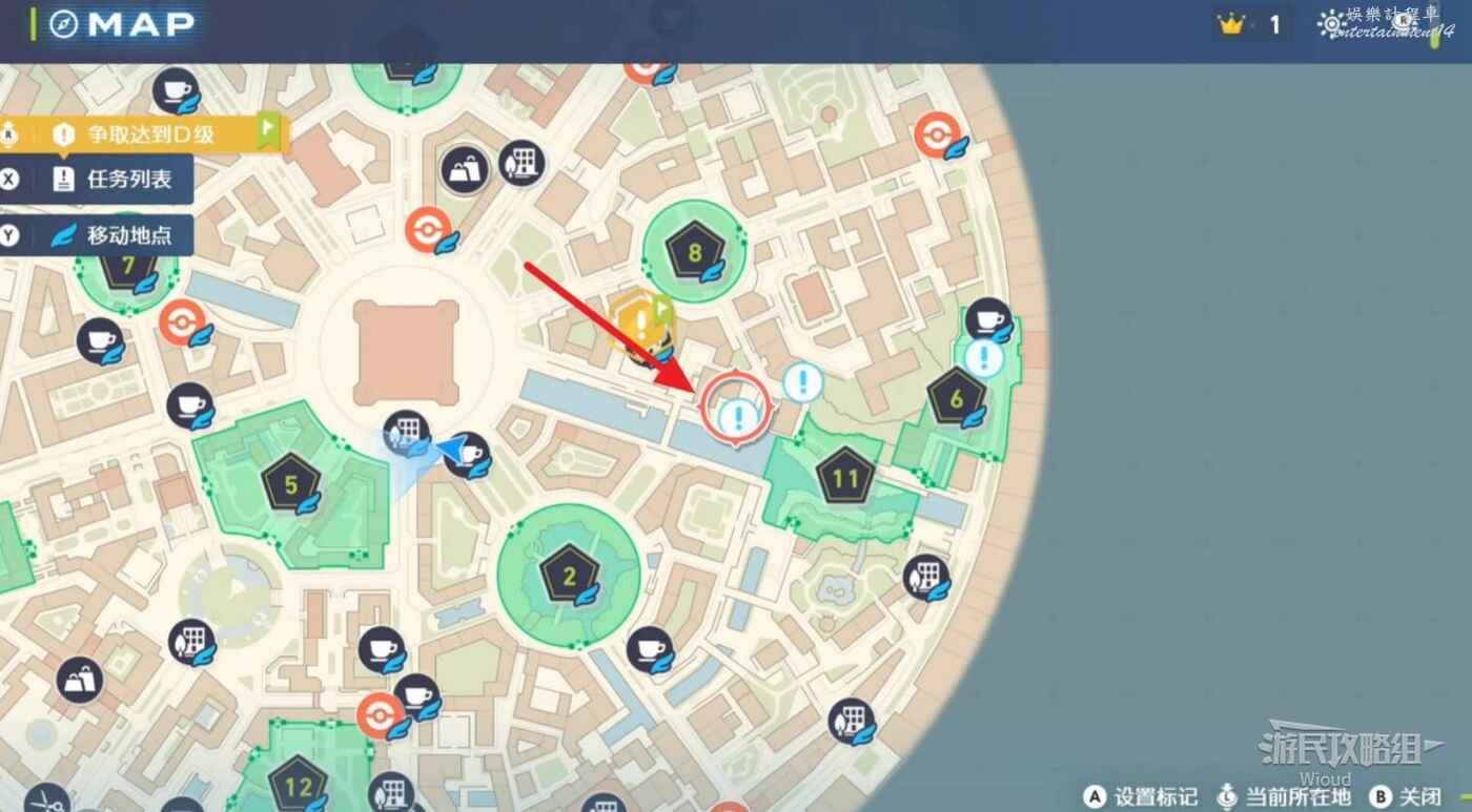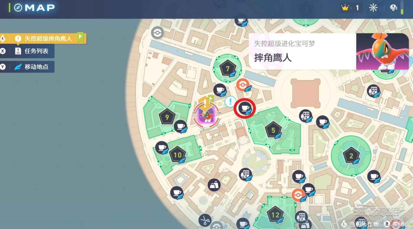 任務位置如下圖所示,提前準備一個帶物理招式的寶可夢。