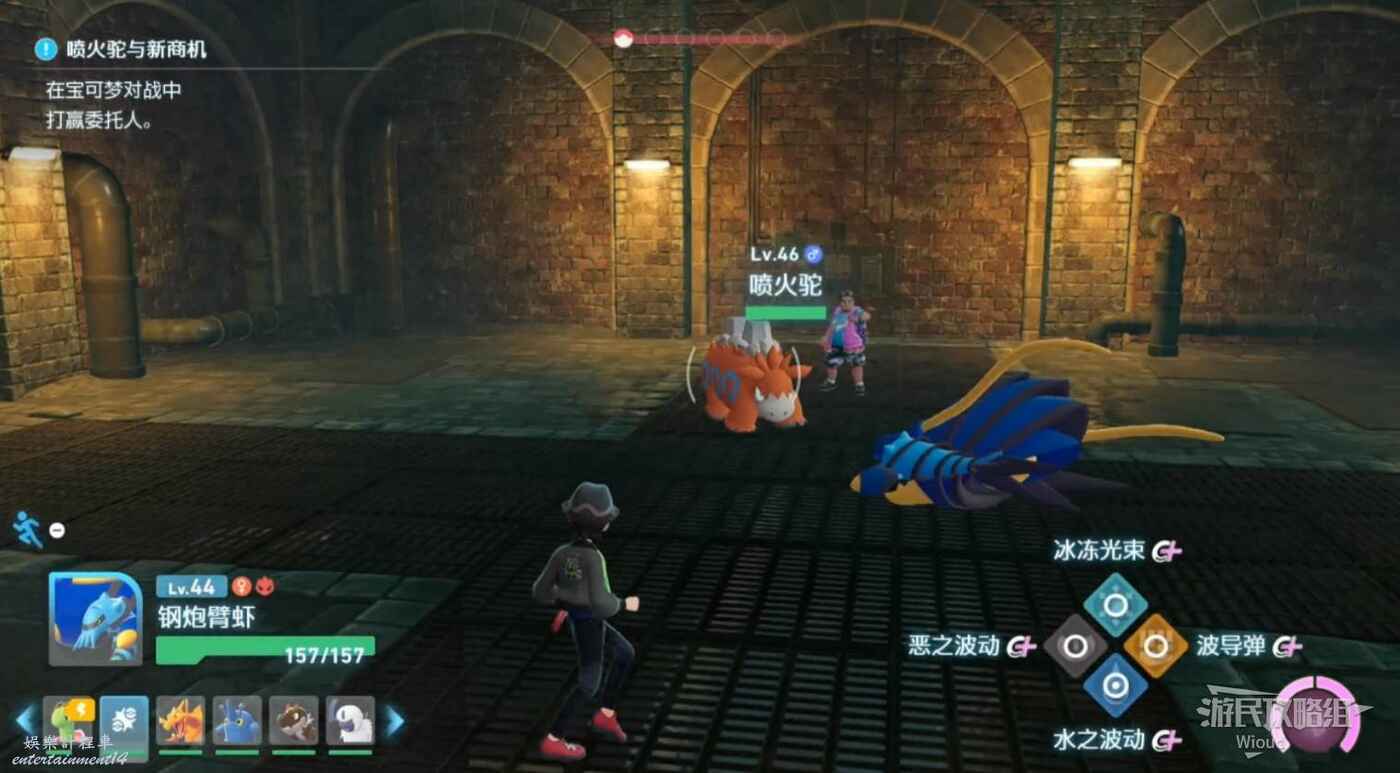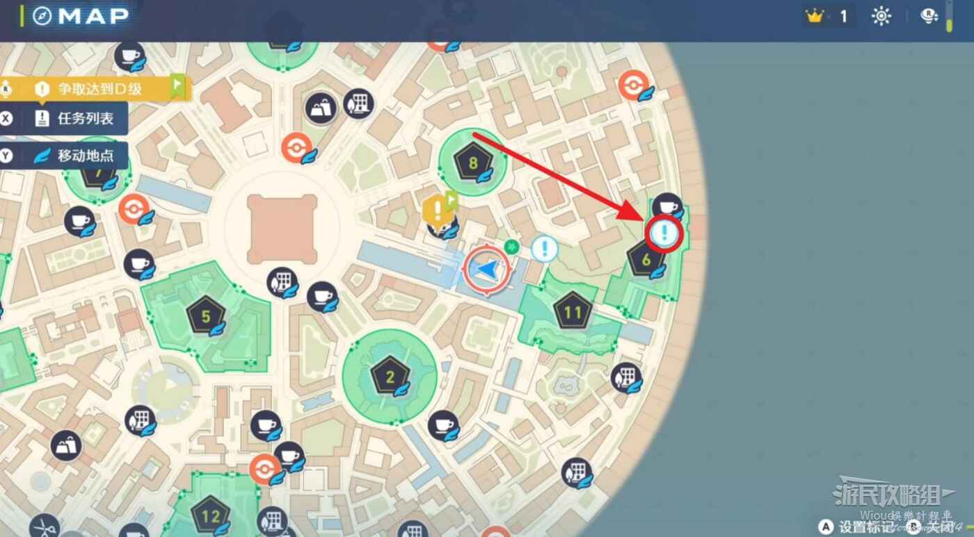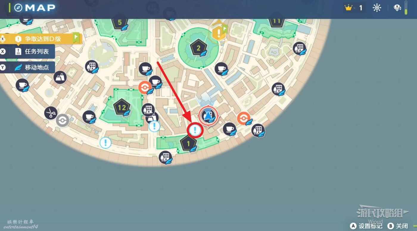 任務位置如下圖所示,提前準備一個帶物理招式的寶可夢。