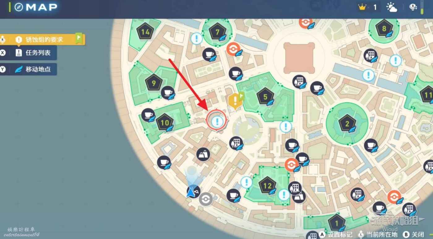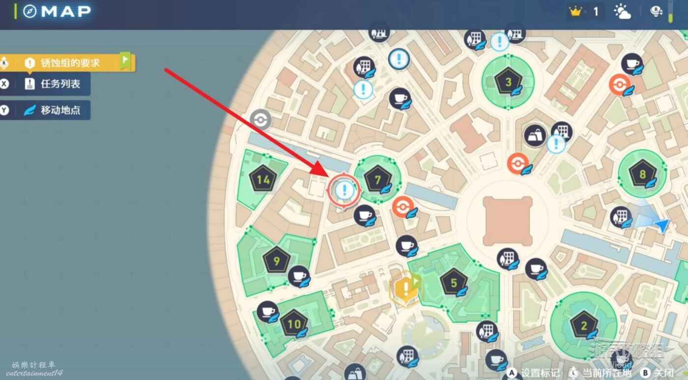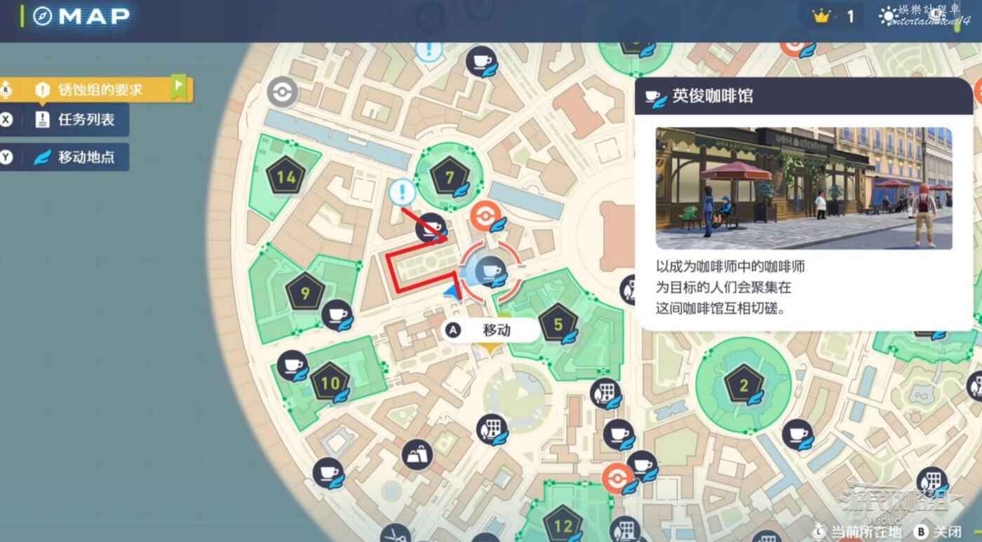 先傳送到【英俊咖啡館】,通過咖啡館旁邊的全息傳送梯到樓頂,然後跟隨下圖紅線走到任務發佈人的位置。