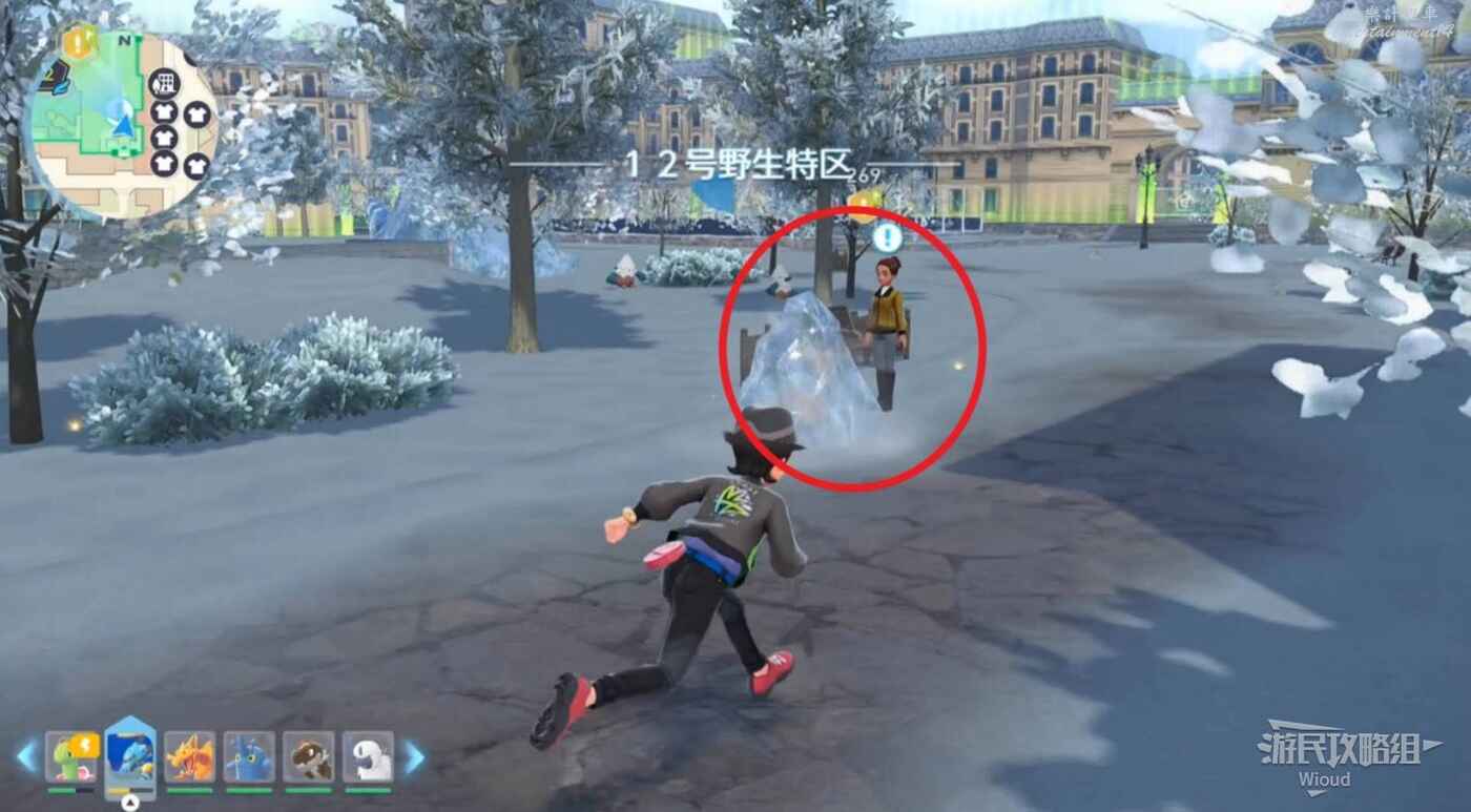 和不遠處的NPC互動,讓寶可夢用火屬性招式攻擊冰塊,完成任務。