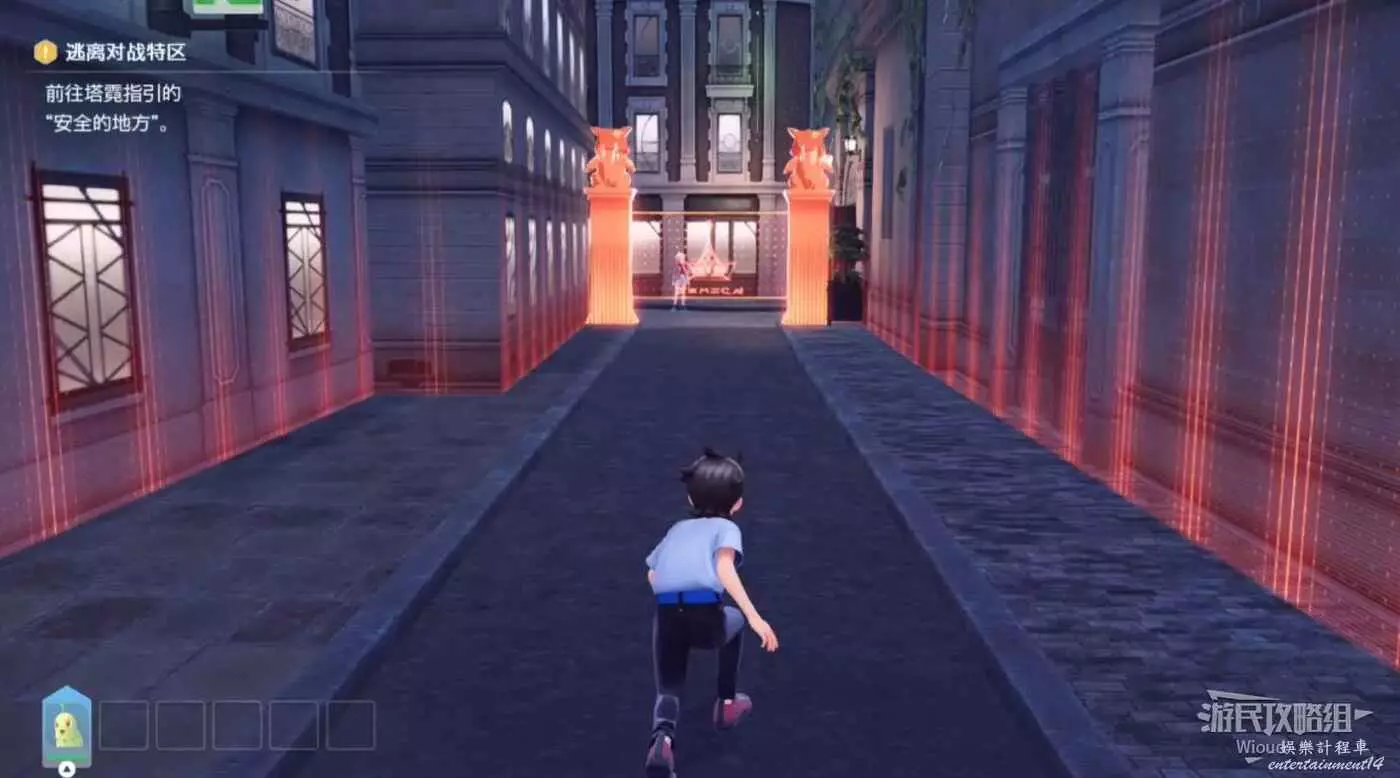跟隨劇情和塔霓擊敗路上碰到的女服務生,過完一段劇情,從盡頭紅色的門離開對戰特區右拐,進入盡頭的旅館。