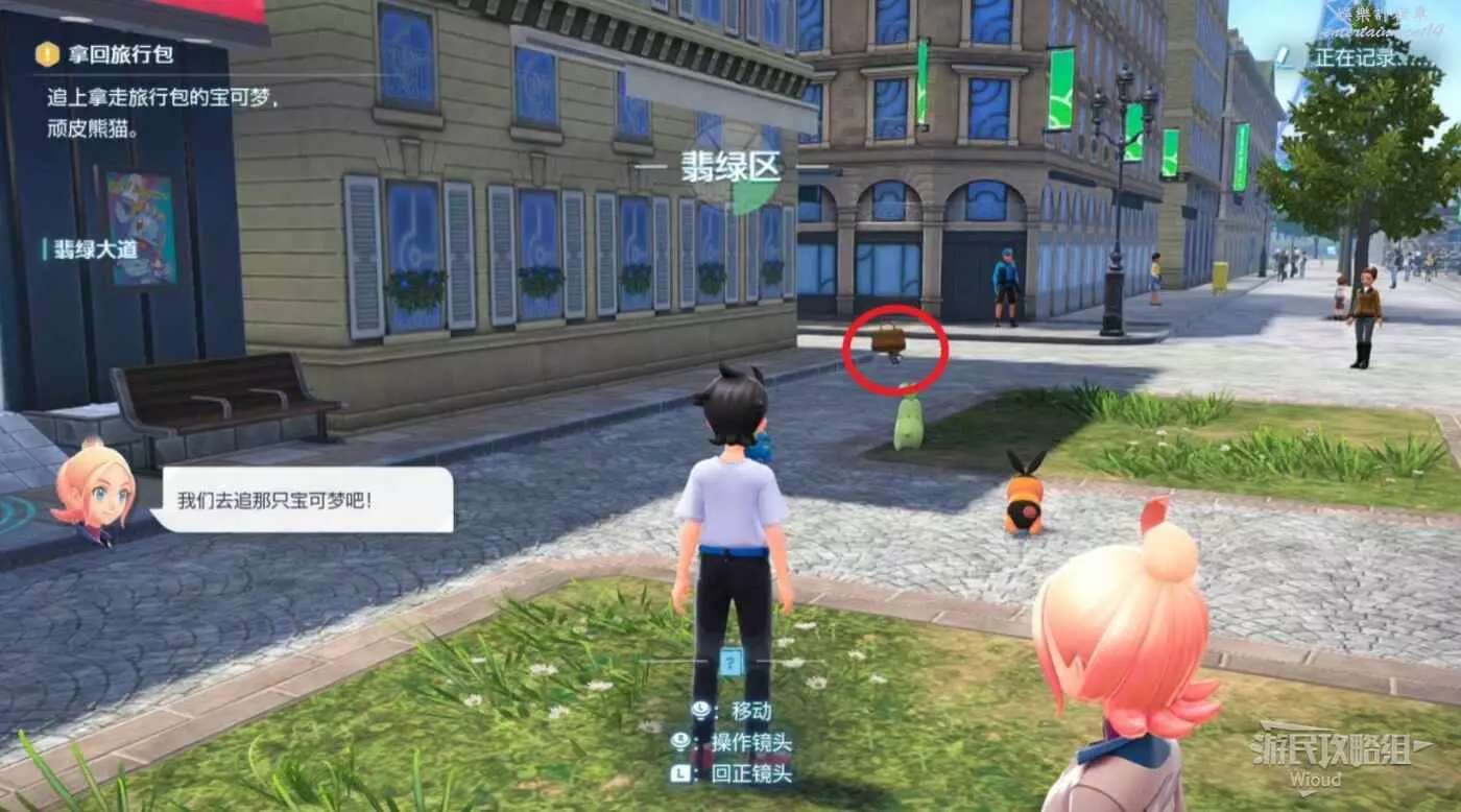 對話時一個寶可夢偷走了我們的行李包,跟隨背影追上它。