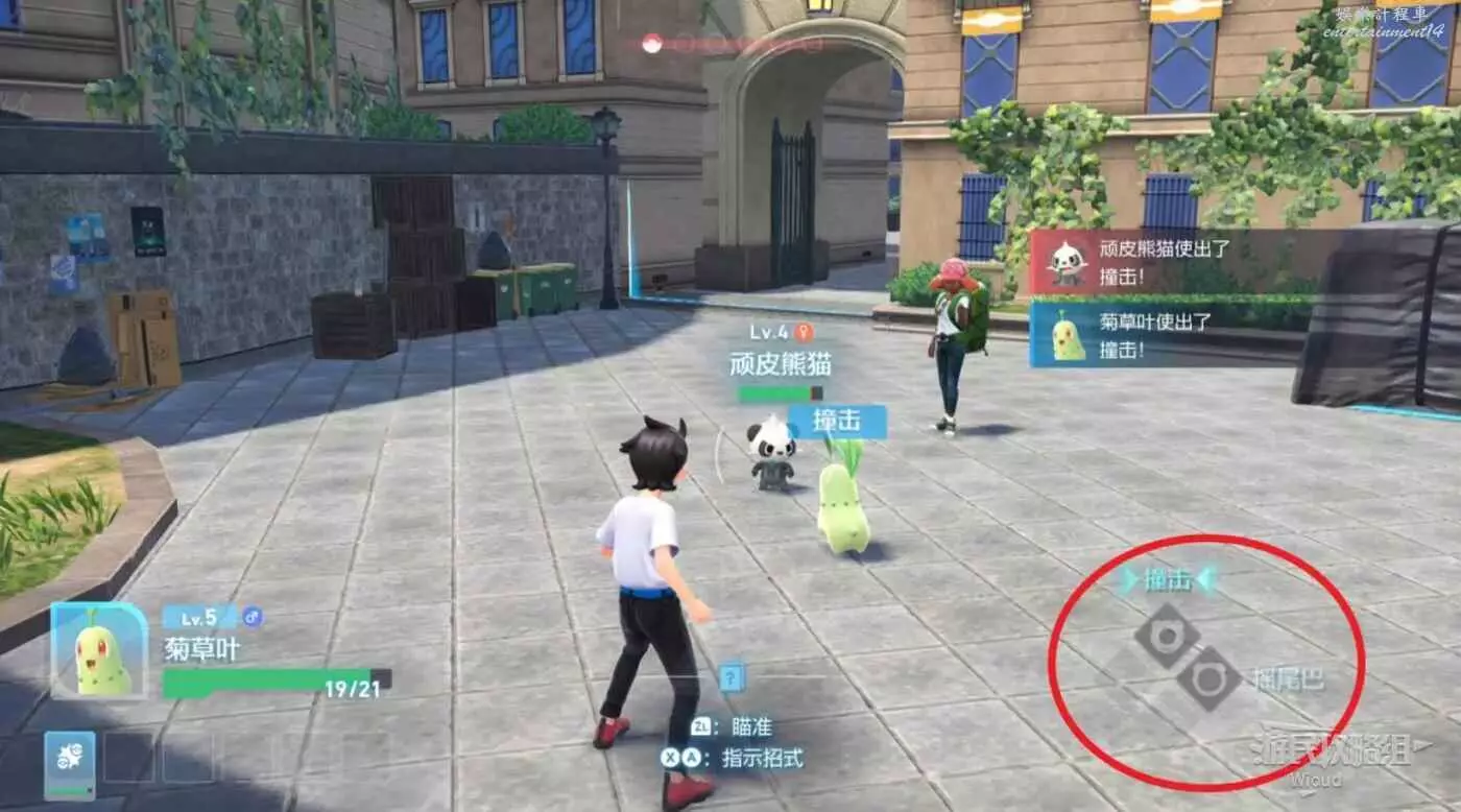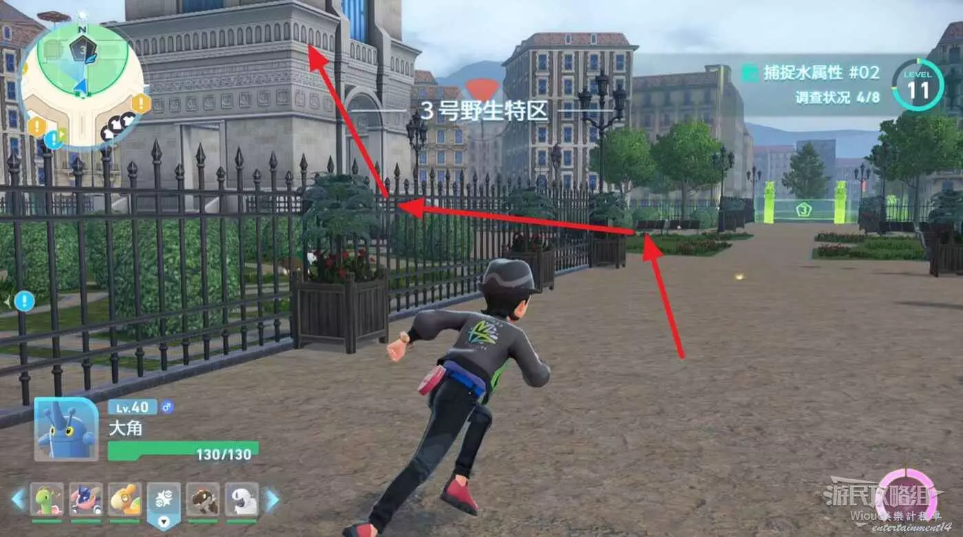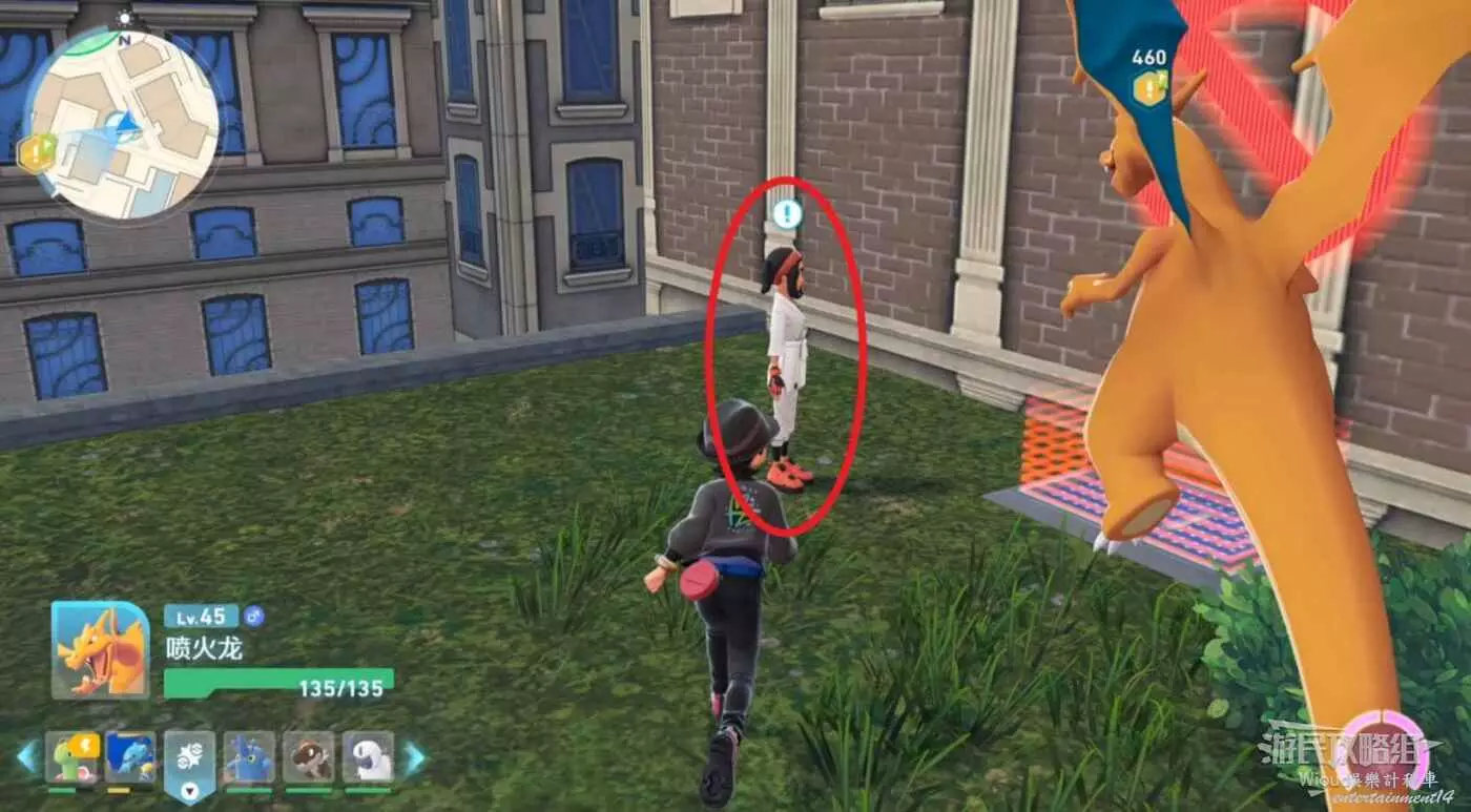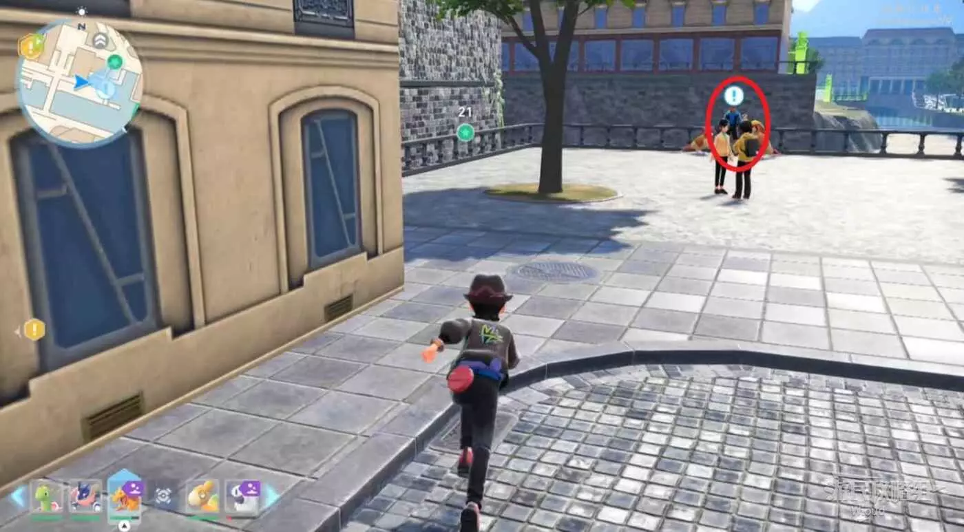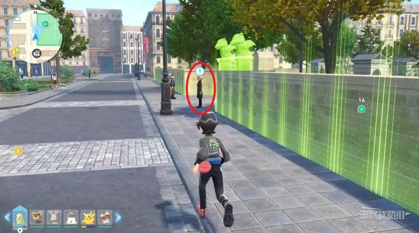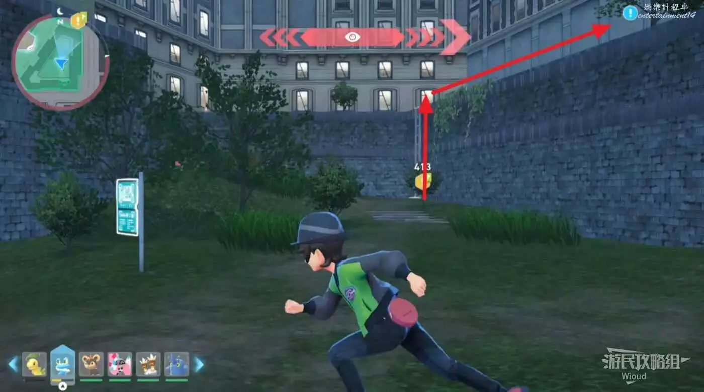 沿路往裡走,擊敗NPC的寶可夢積攢點數,按下左搖杆進入潛行狀態,然後操控寶可夢發動先行攻擊可造成大量傷害。