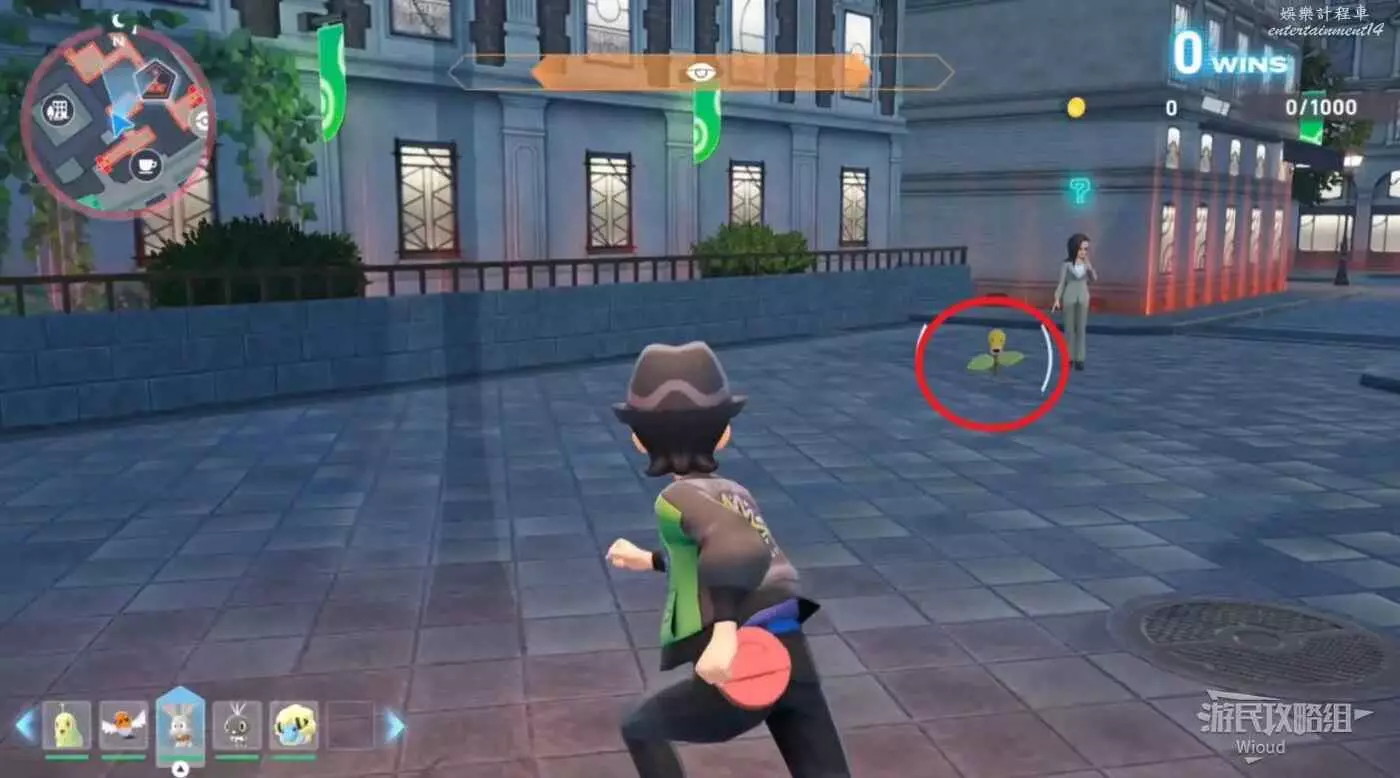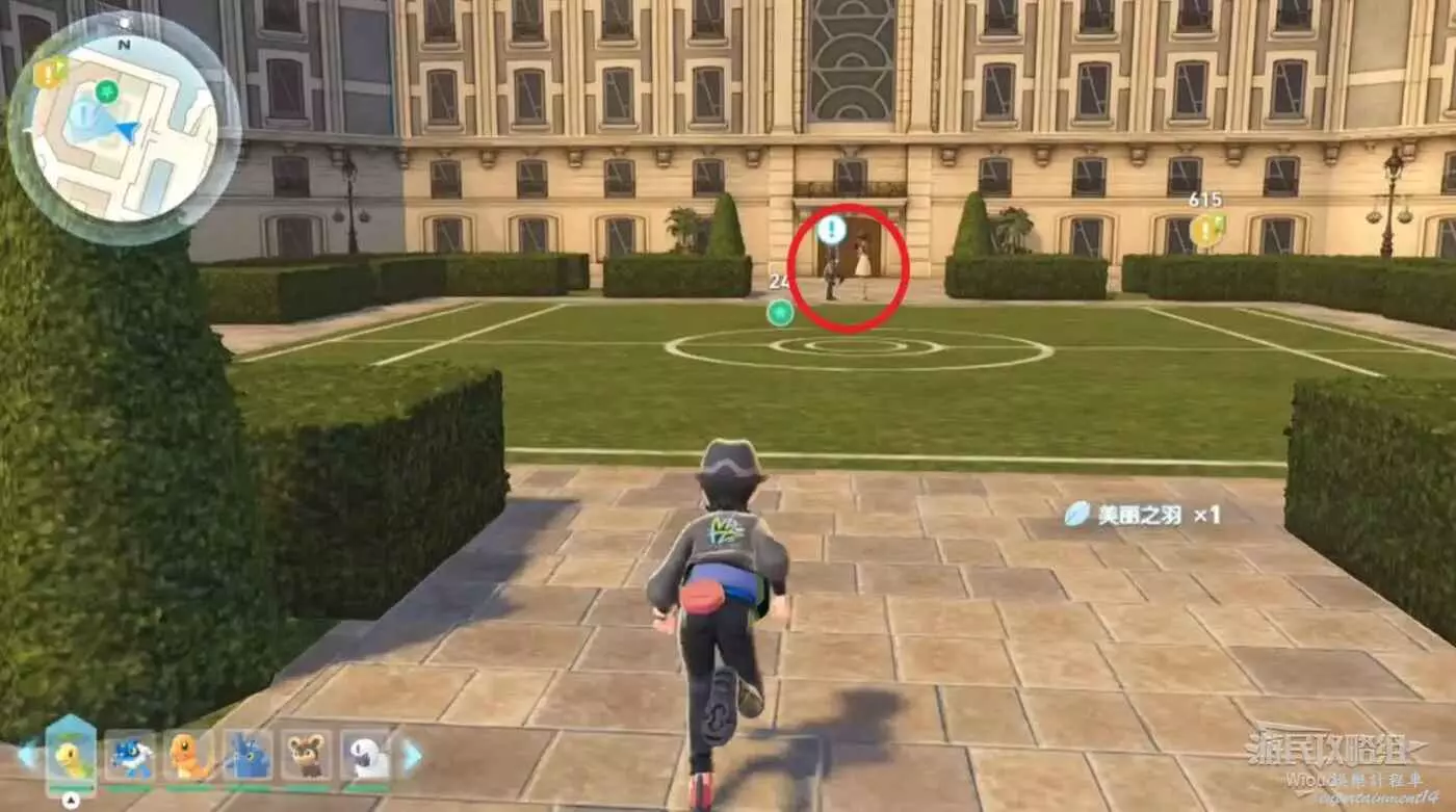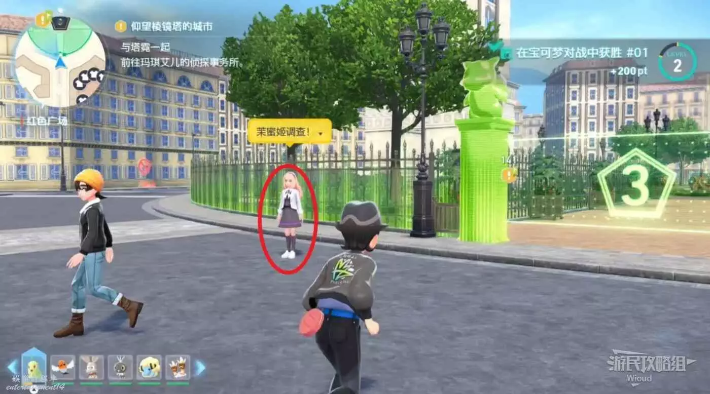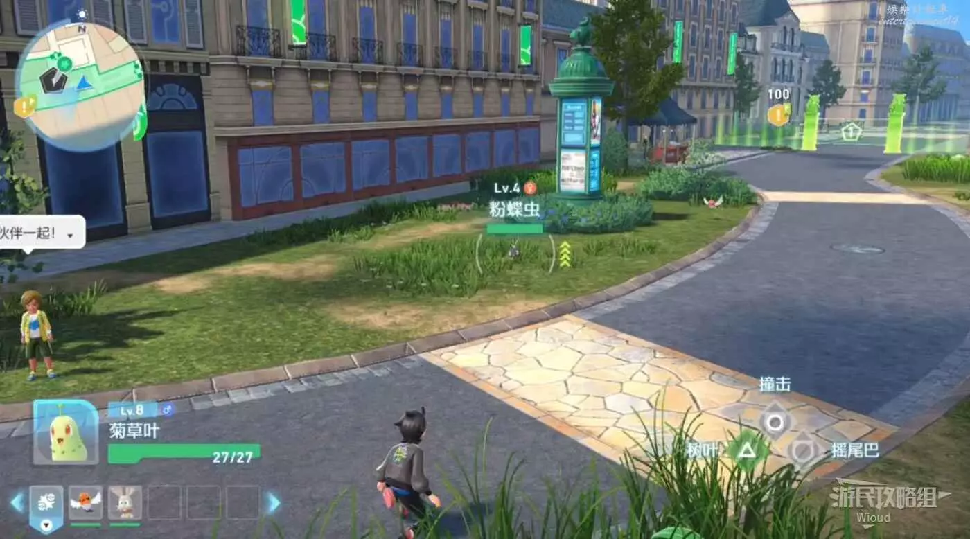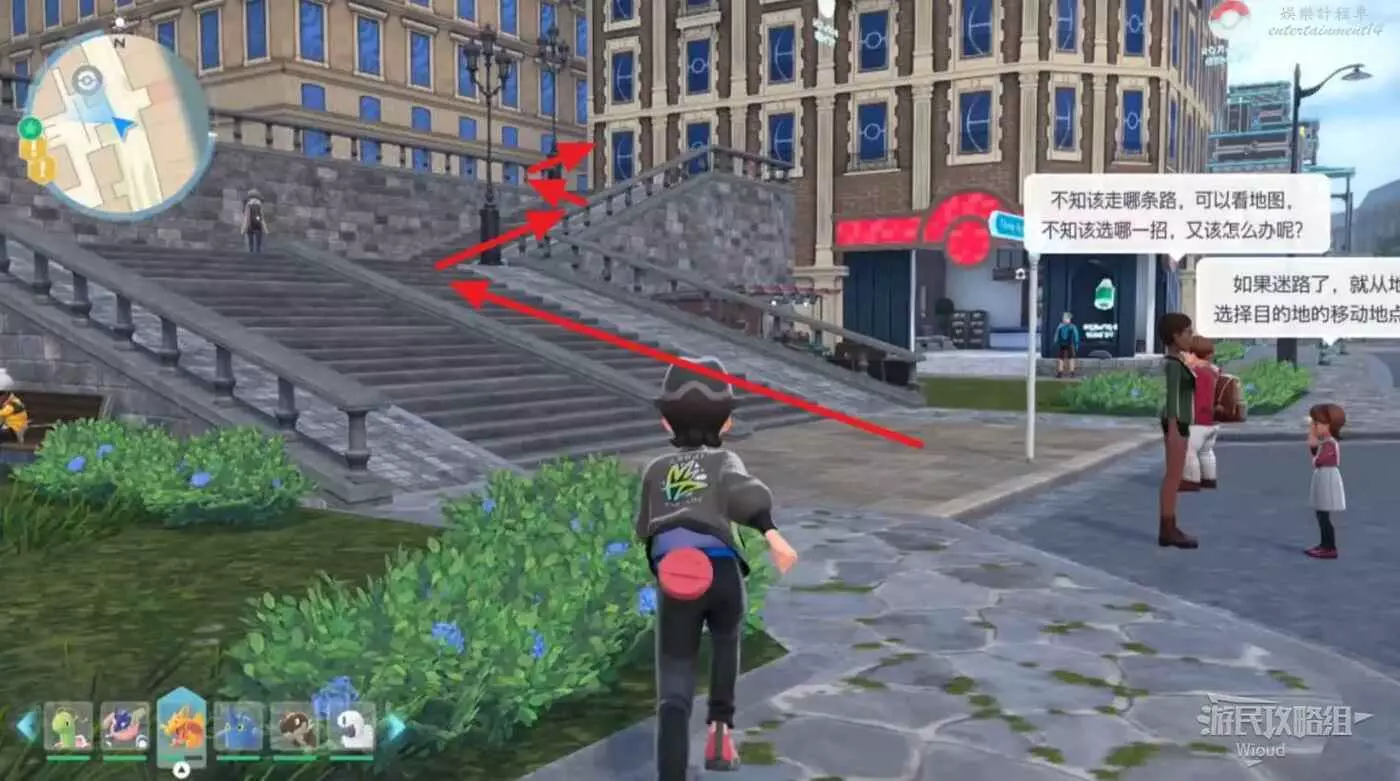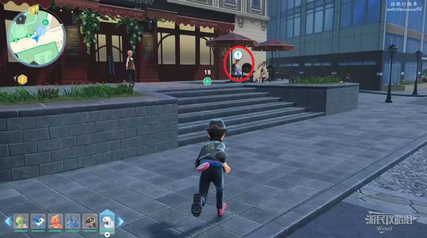 沿路往裡走,擊敗NPC的寶可夢積攢點數,按下左搖杆進入潛行狀態,然後操控寶可夢發動先行攻擊可造成大量傷害。