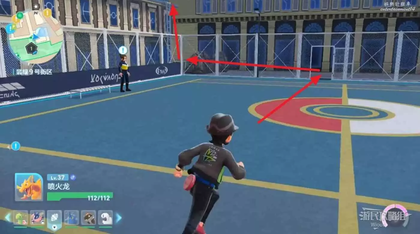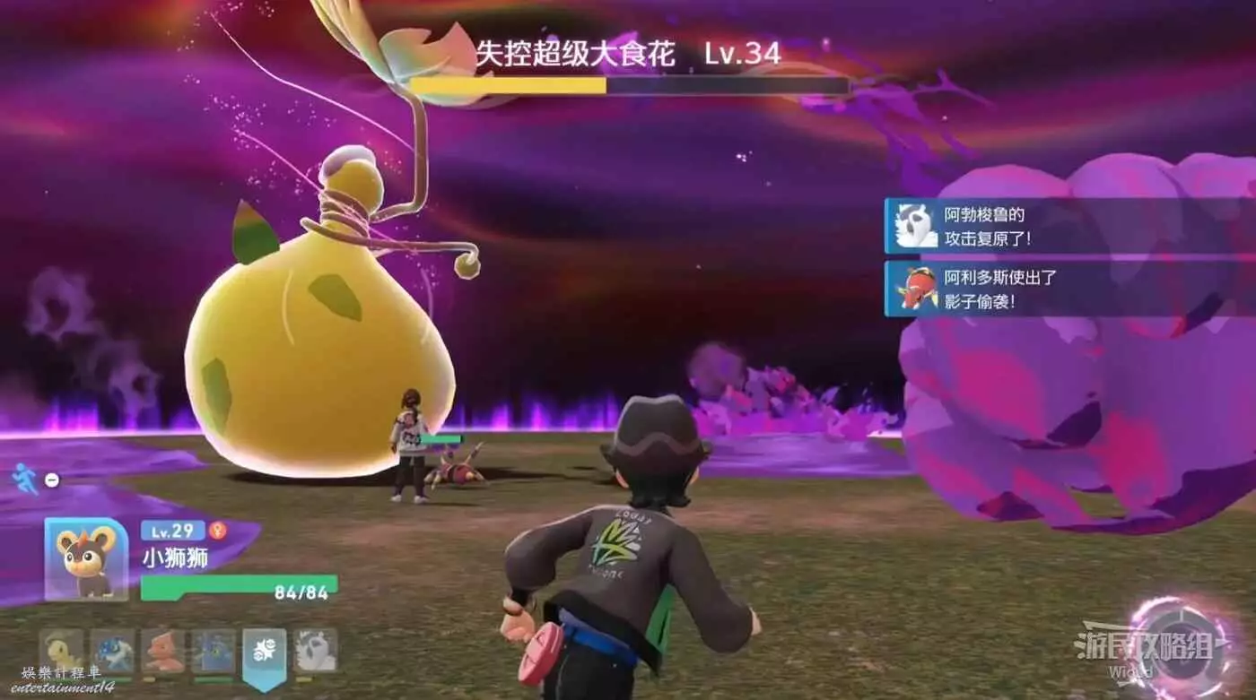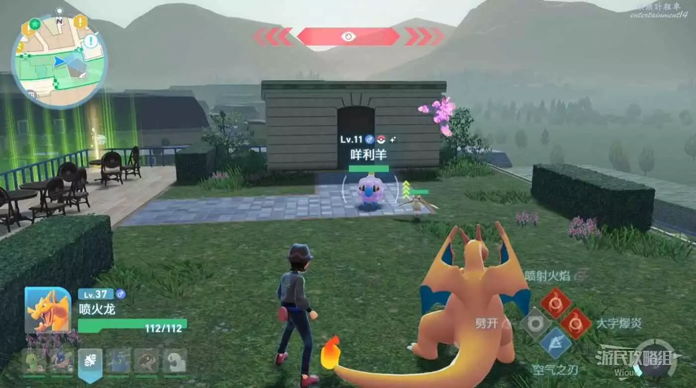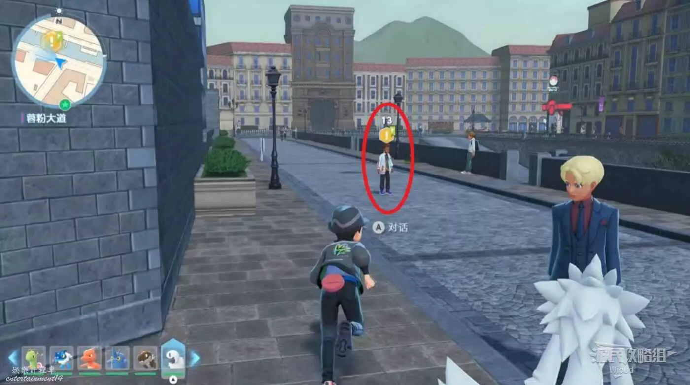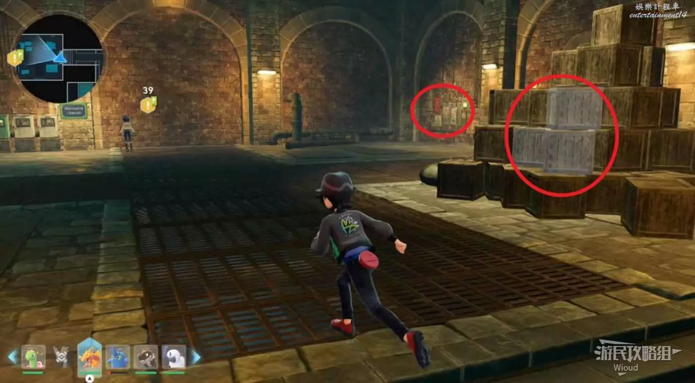 沿路往裡走,擊敗NPC的寶可夢積攢點數,按下左搖杆進入潛行狀態,然後操控寶可夢發動先行攻擊可造成大量傷害。