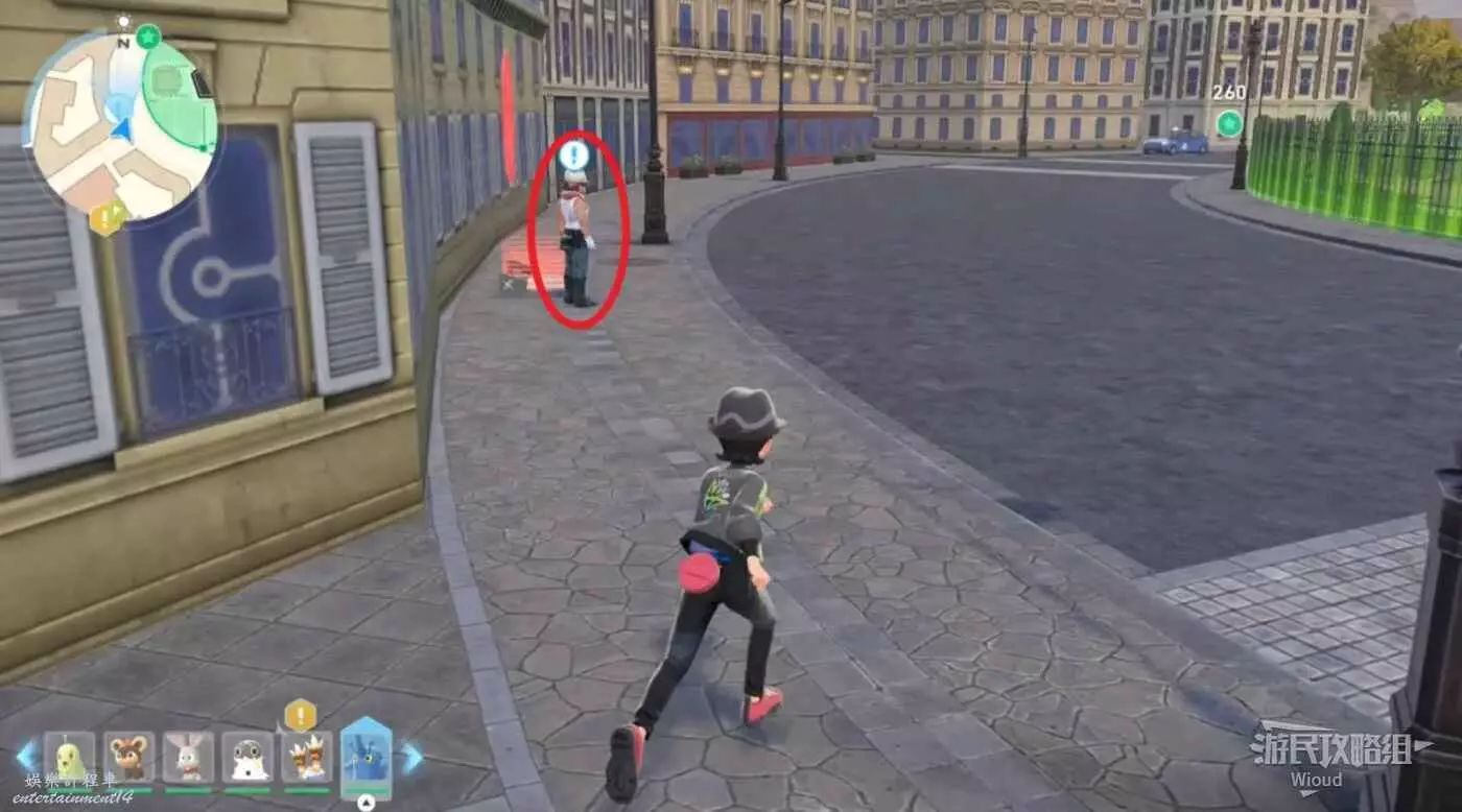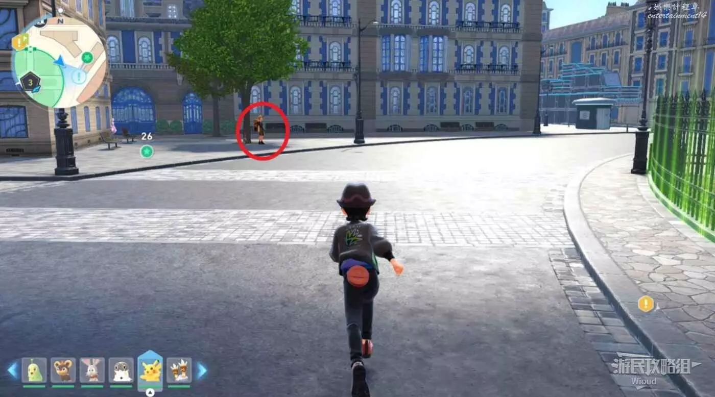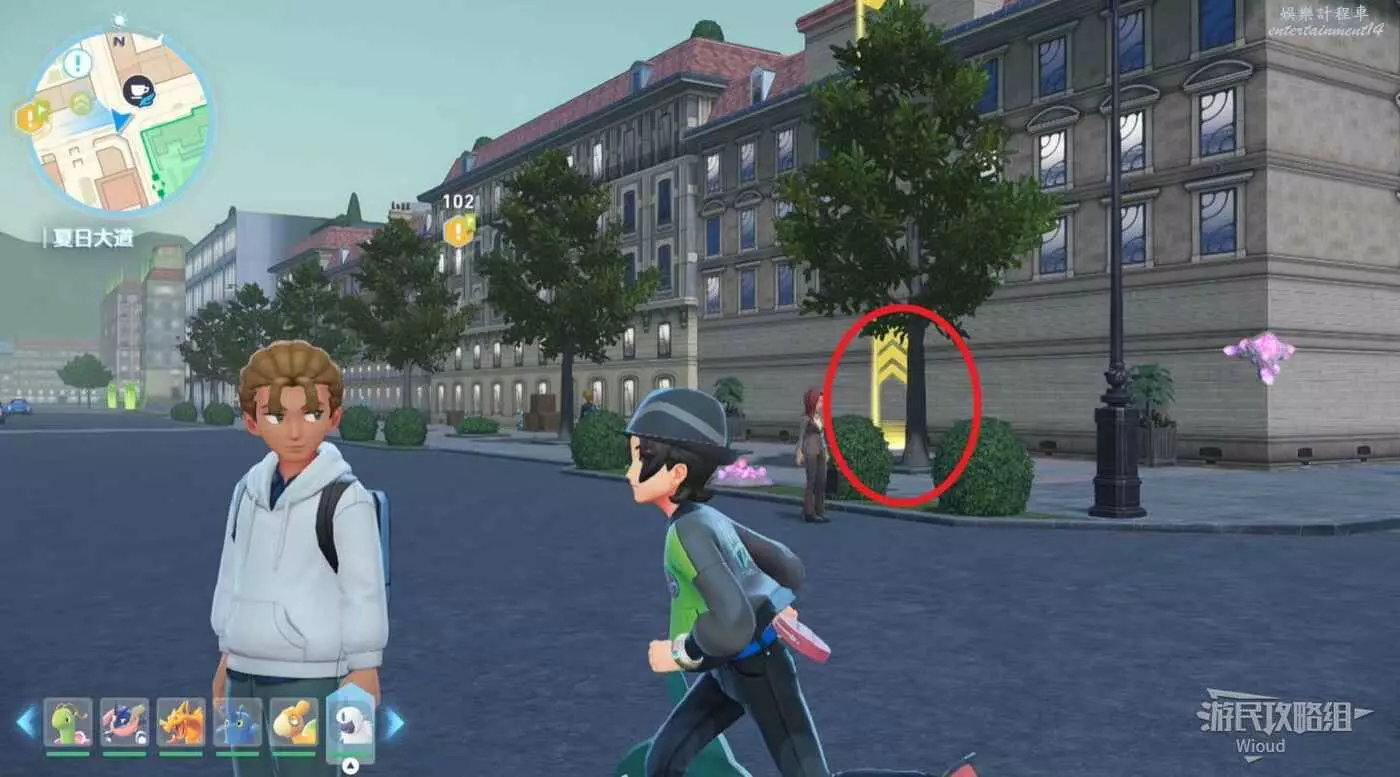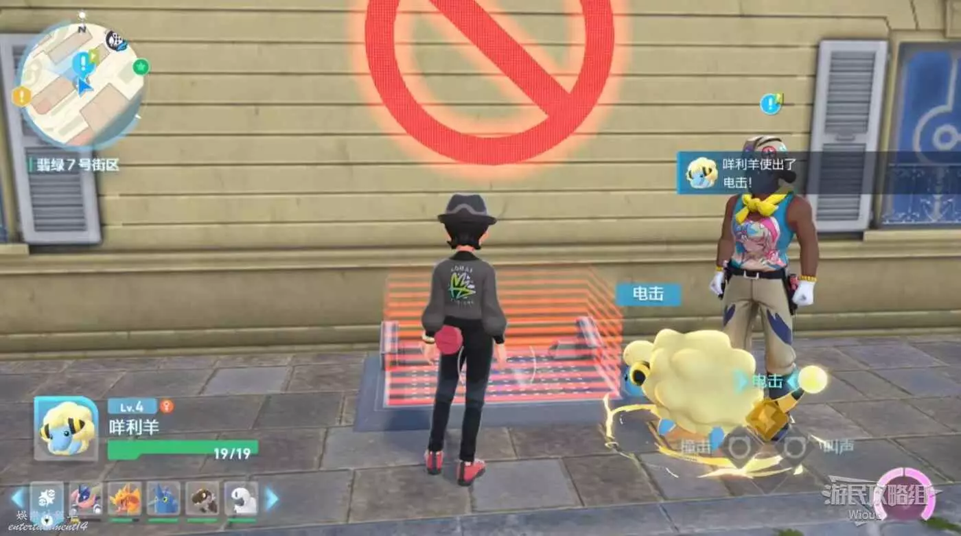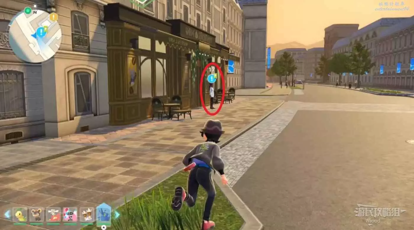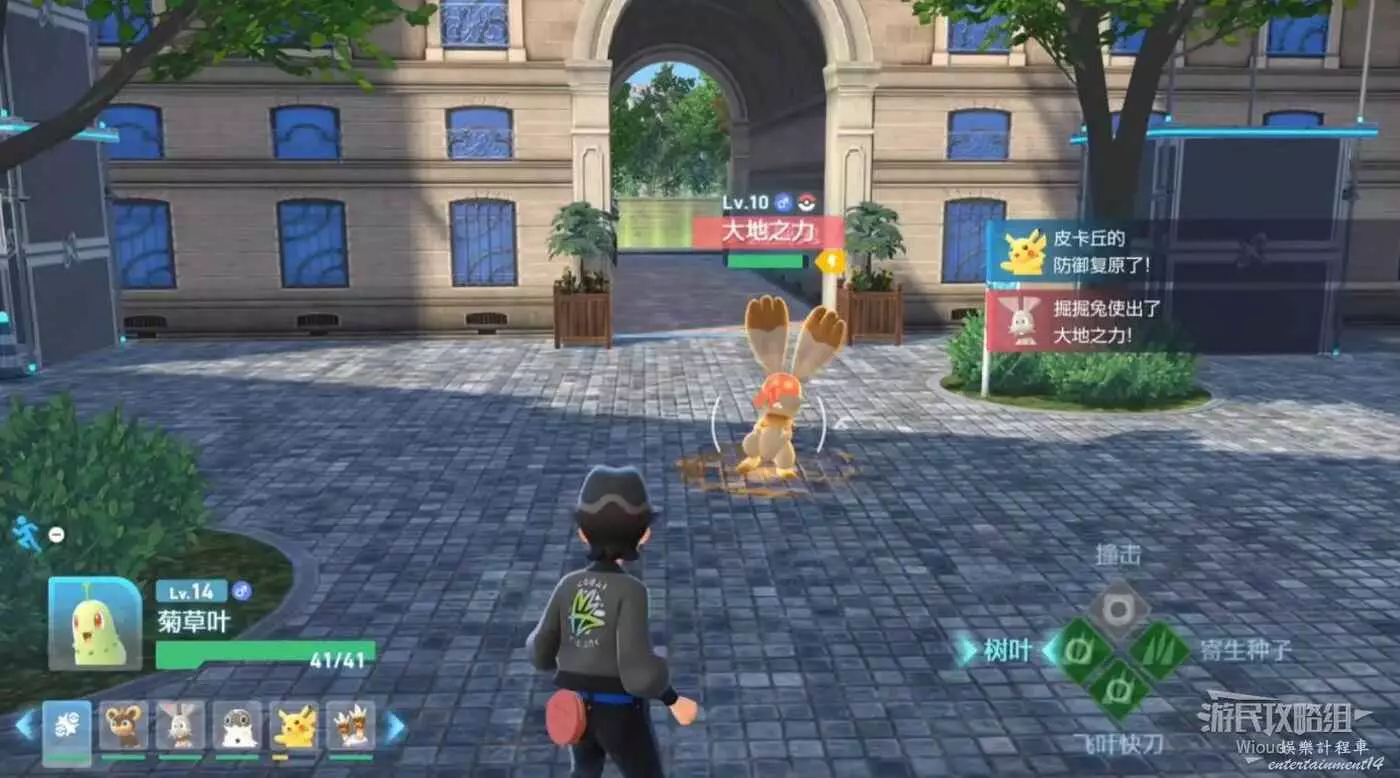 沿路往裡走,擊敗NPC的寶可夢積攢點數,按下左搖杆進入潛行狀態,然後操控寶可夢發動先行攻擊可造成大量傷害。