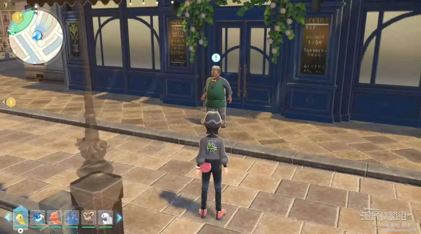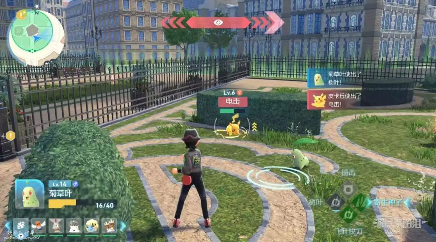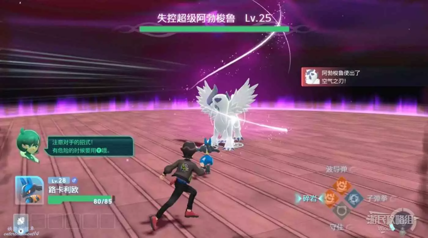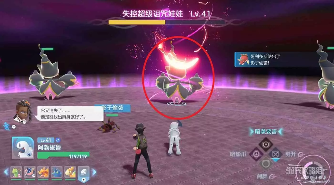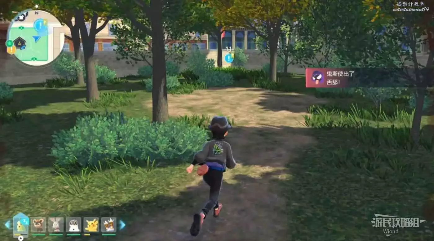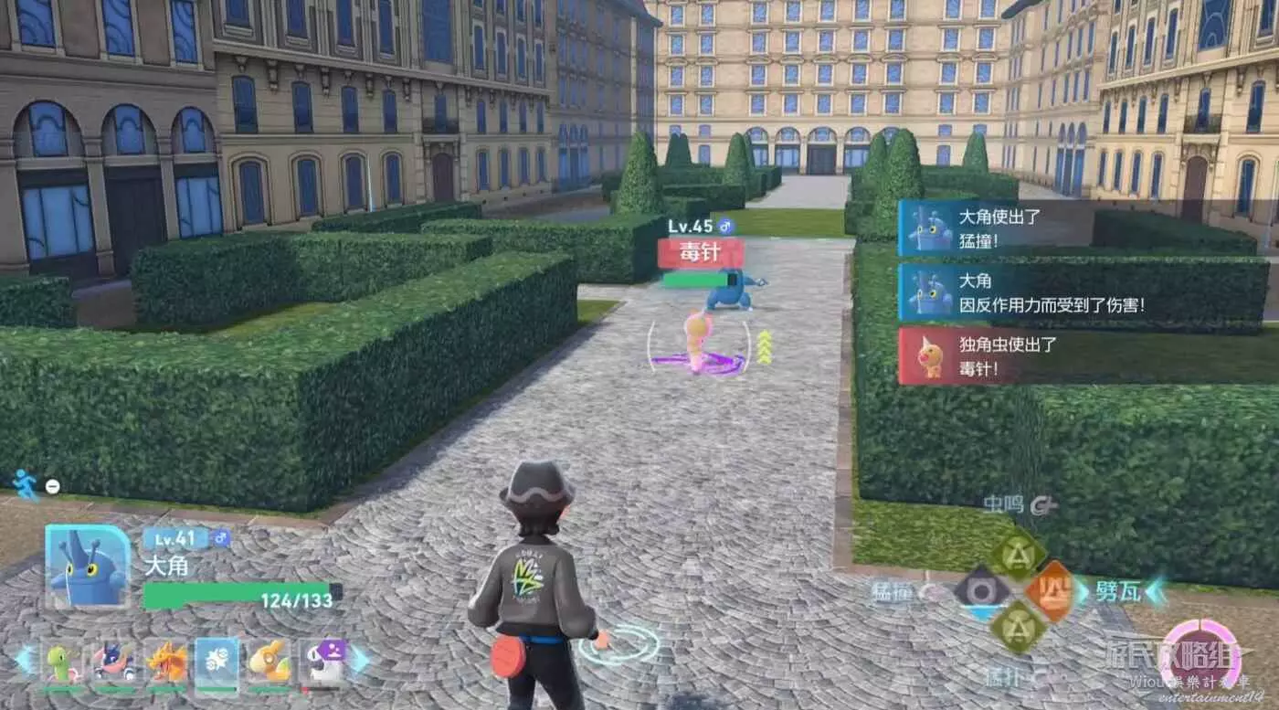沿路往裡走,擊敗NPC的寶可夢積攢點數,按下左搖杆進入潛行狀態,然後操控寶可夢發動先行攻擊可造成大量傷害。