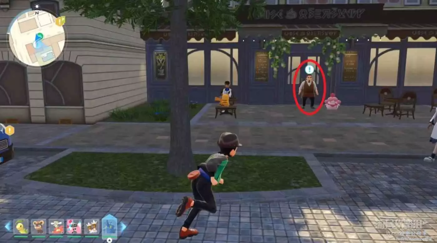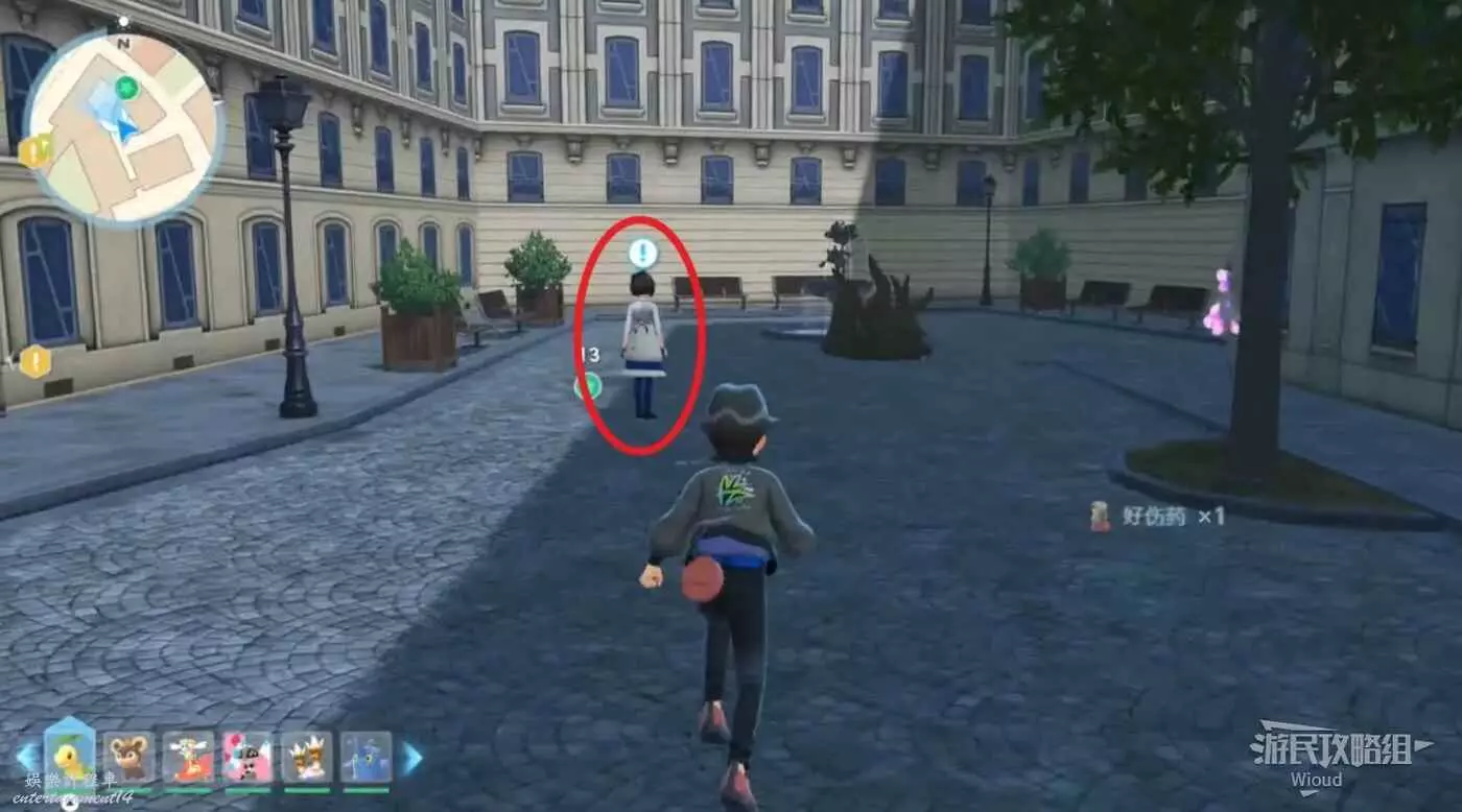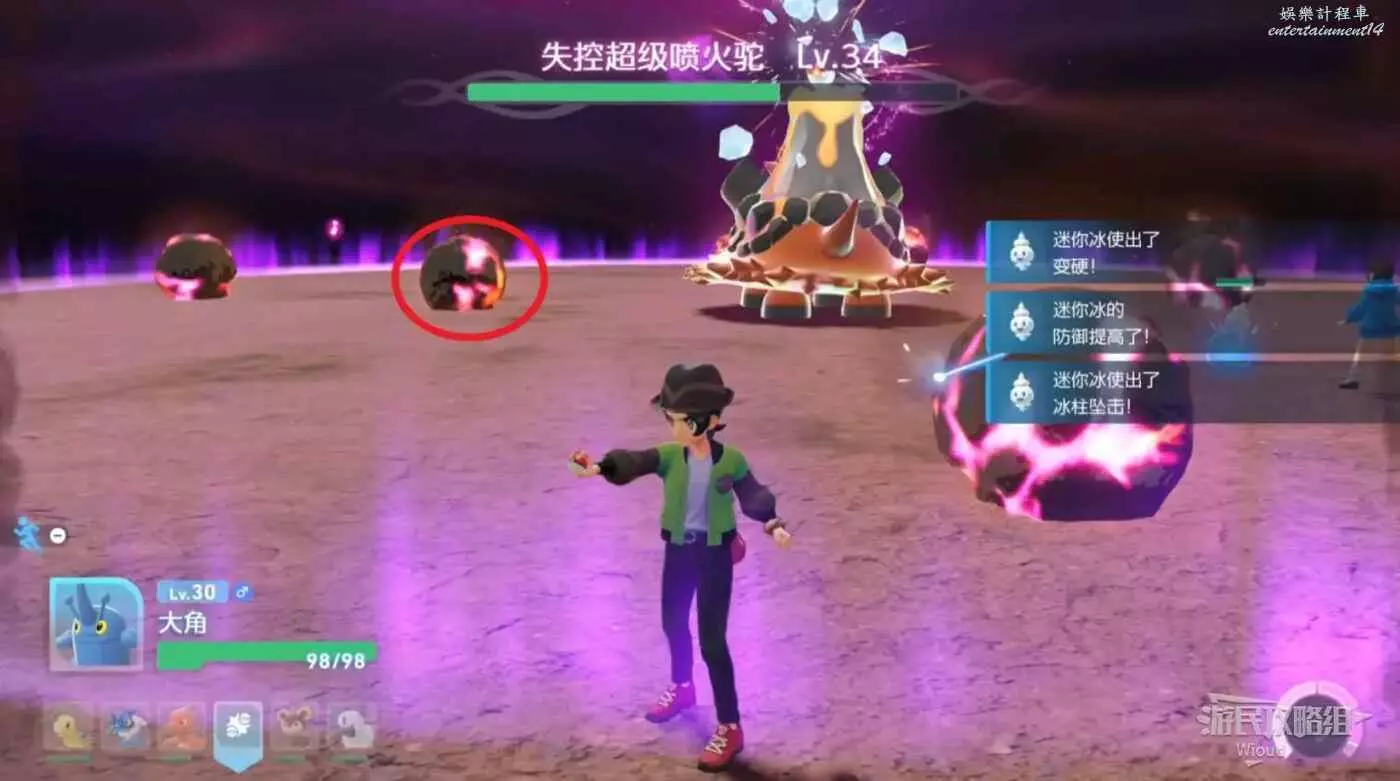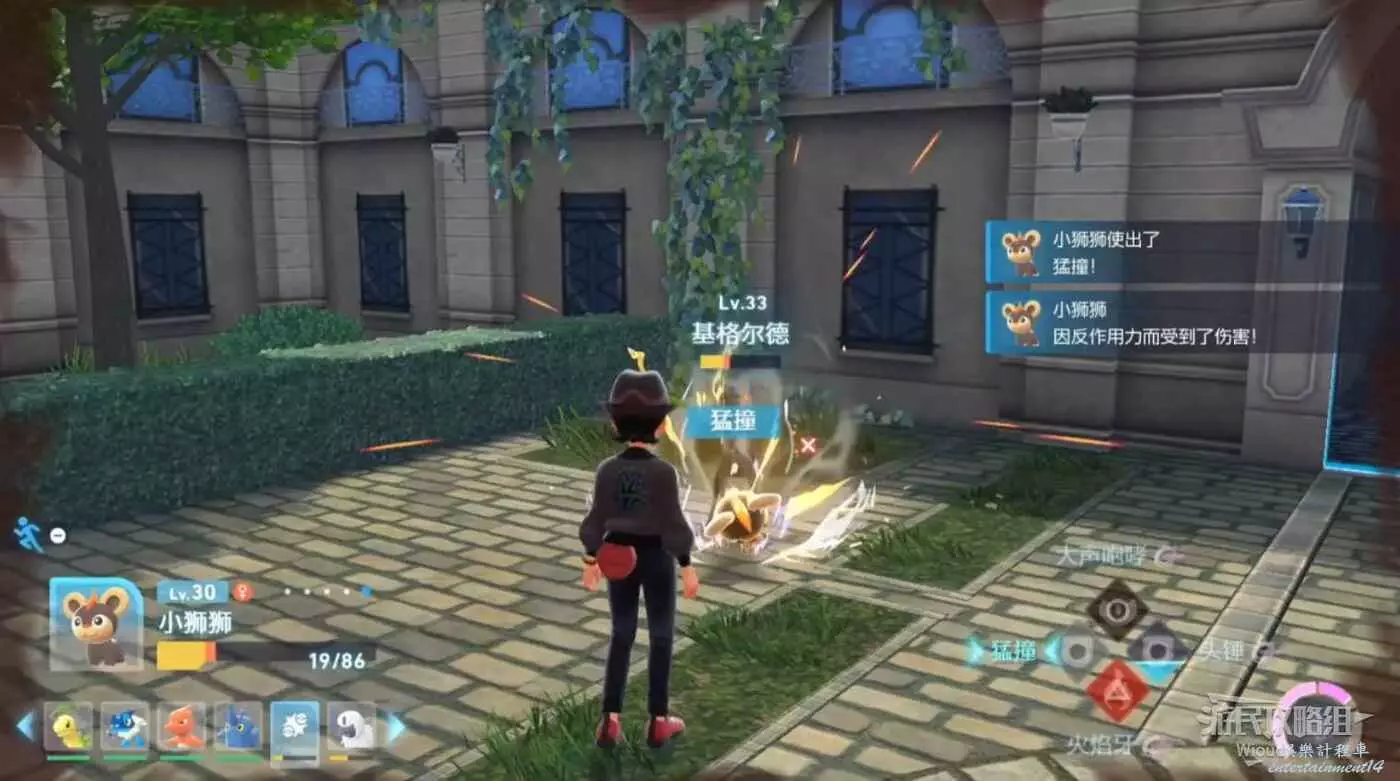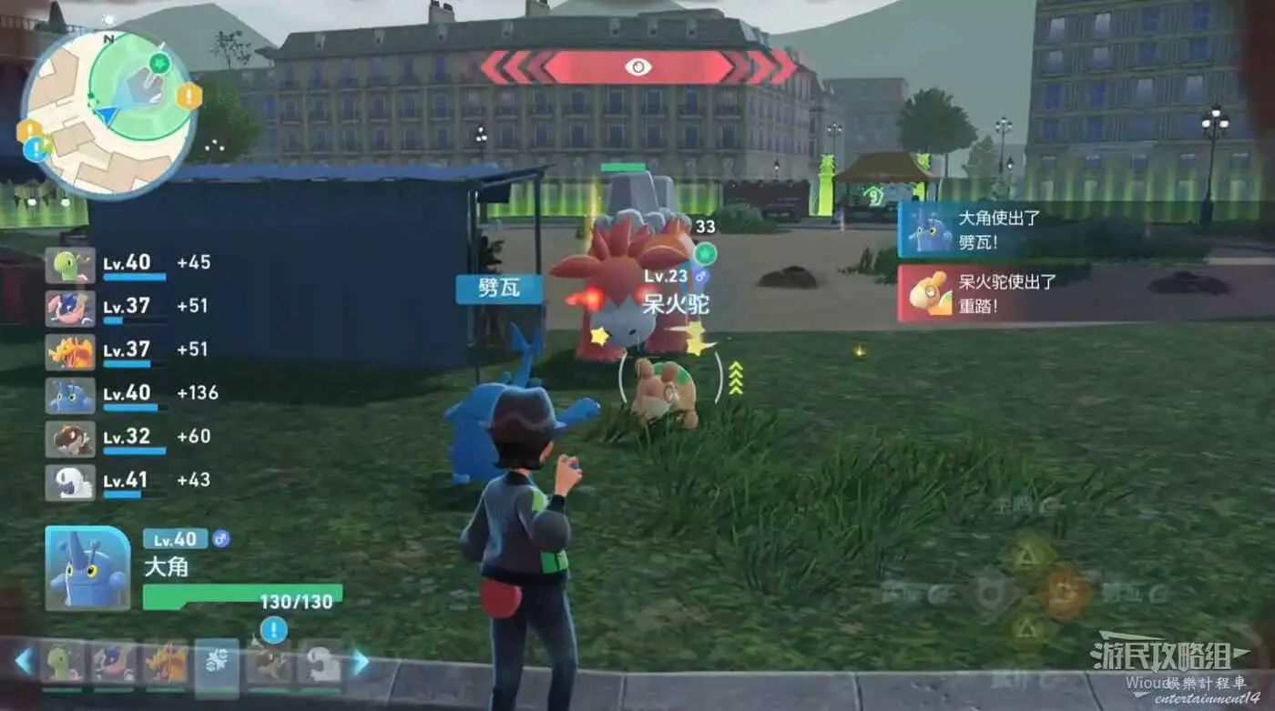 沿路往裡走,擊敗NPC的寶可夢積攢點數,按下左搖杆進入潛行狀態,然後操控寶可夢發動先行攻擊可造成大量傷害。