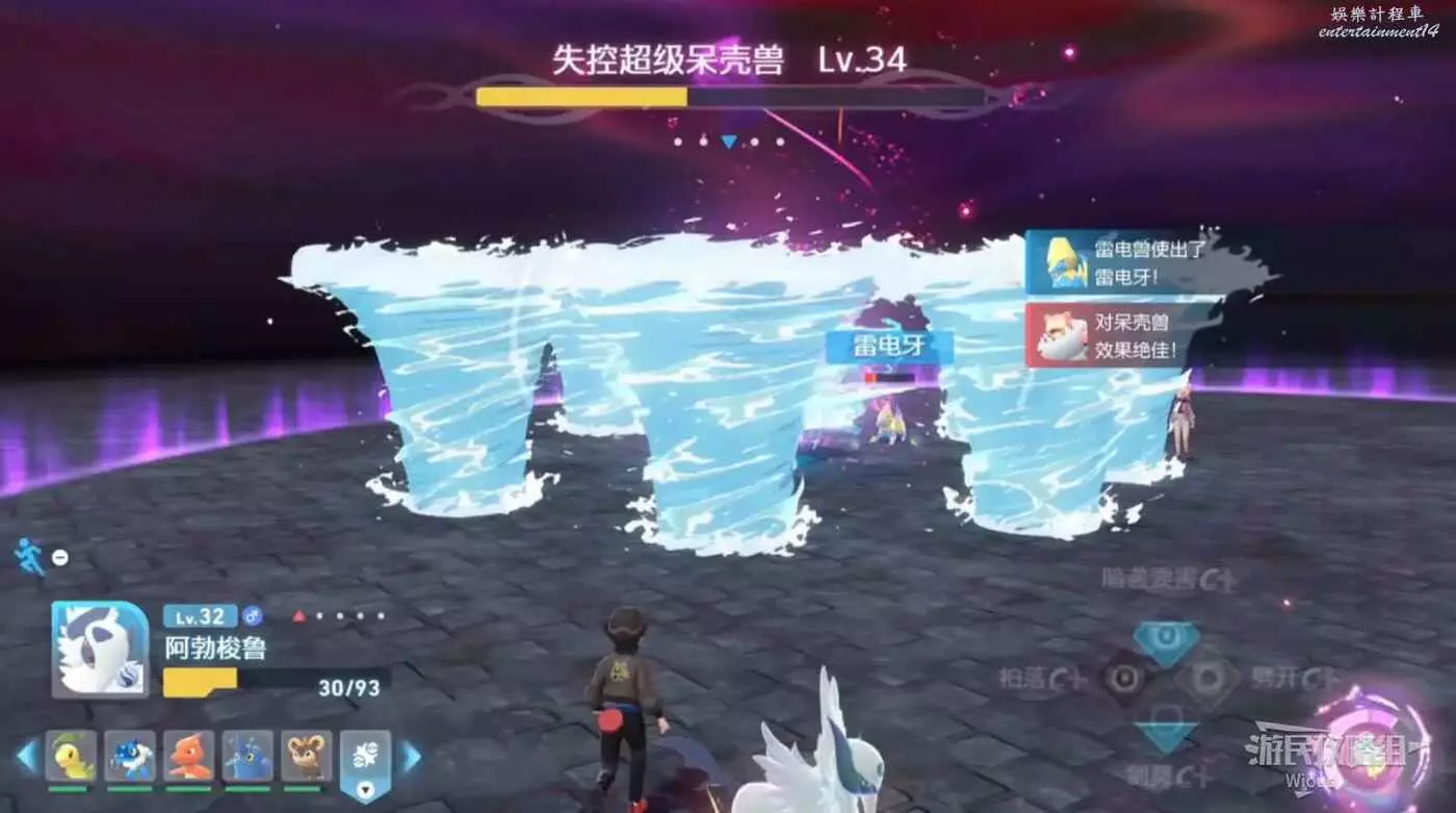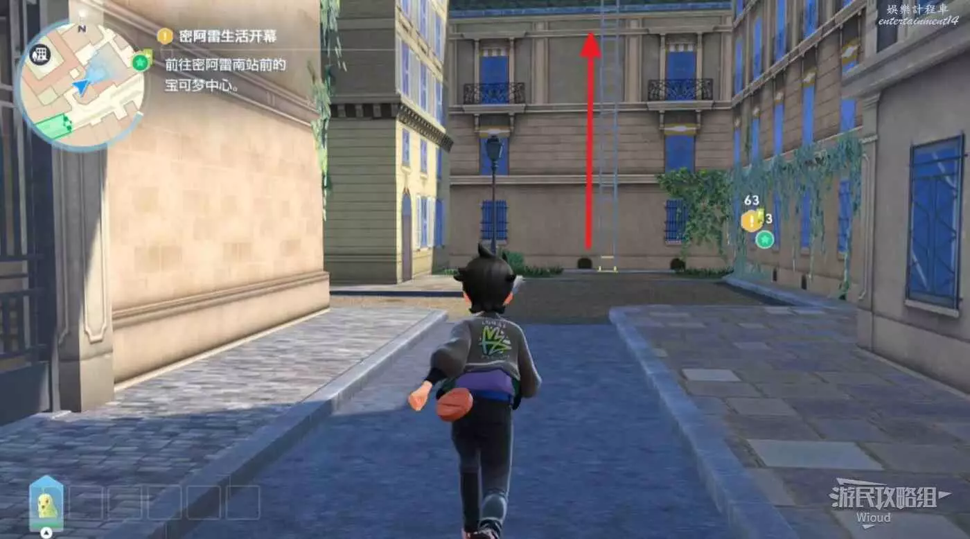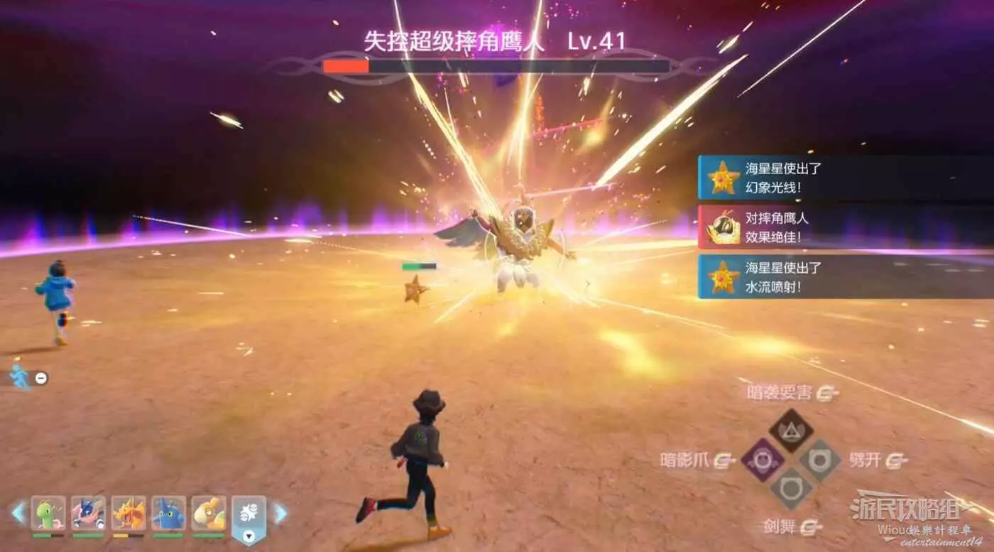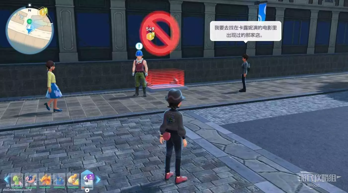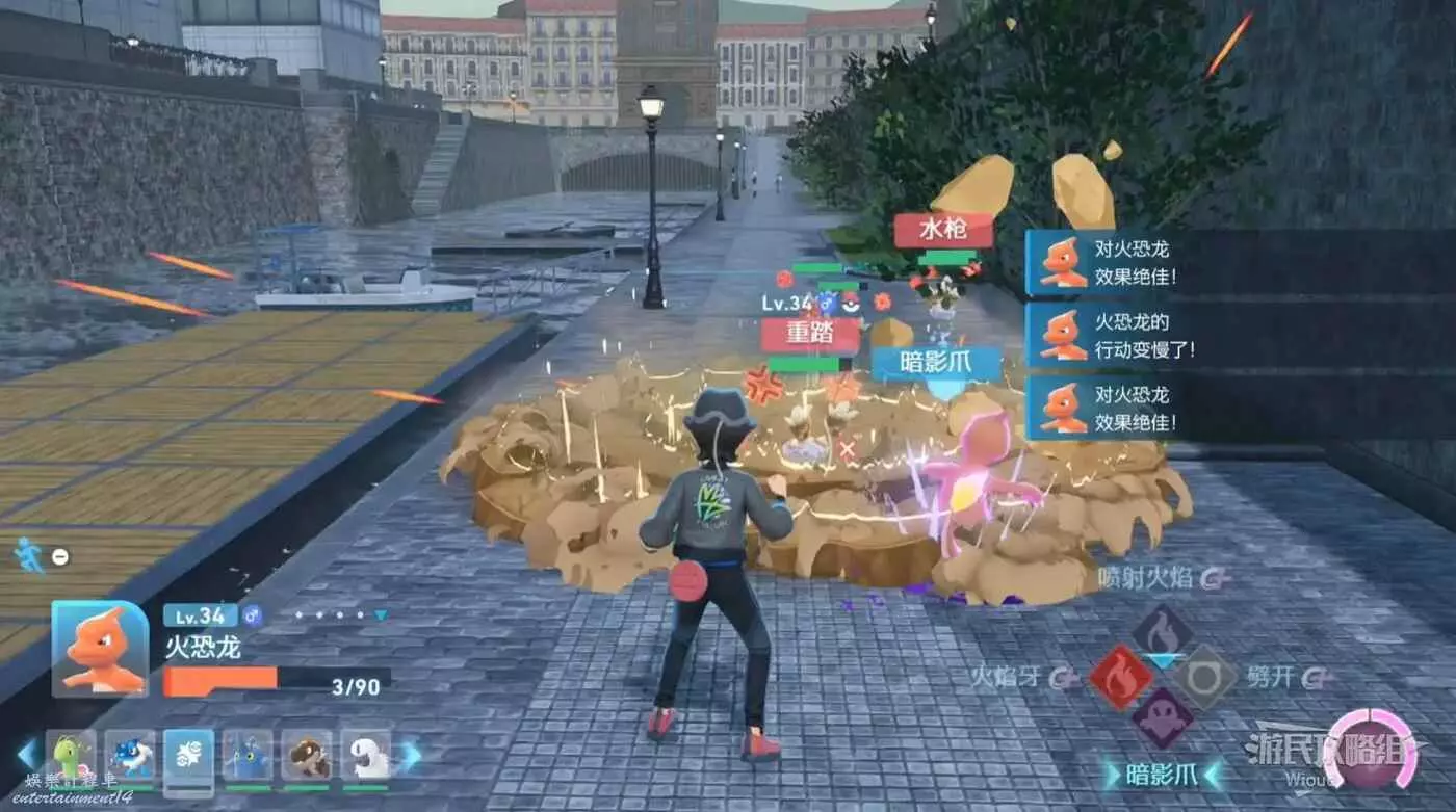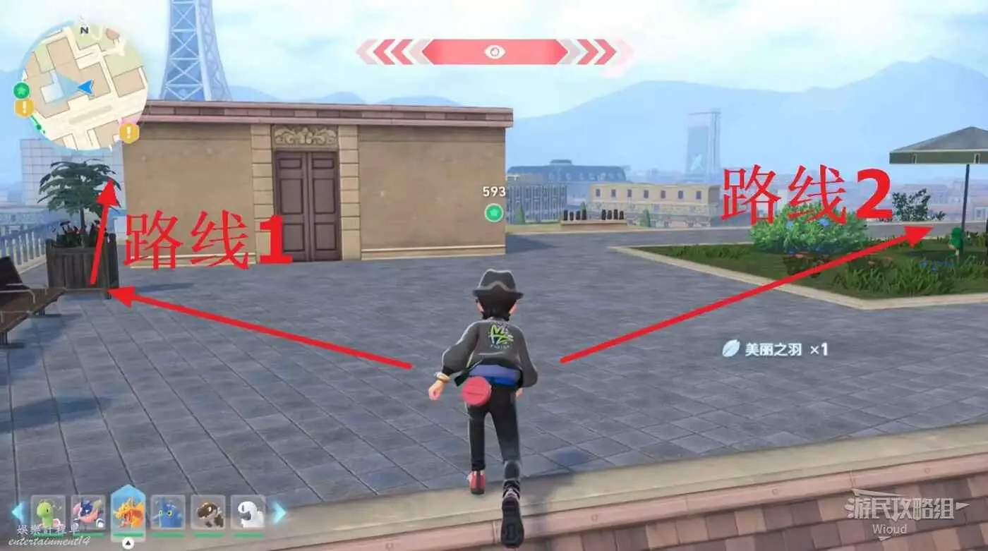 沿路往裡走,擊敗NPC的寶可夢積攢點數,按下左搖杆進入潛行狀態,然後操控寶可夢發動先行攻擊可造成大量傷害。