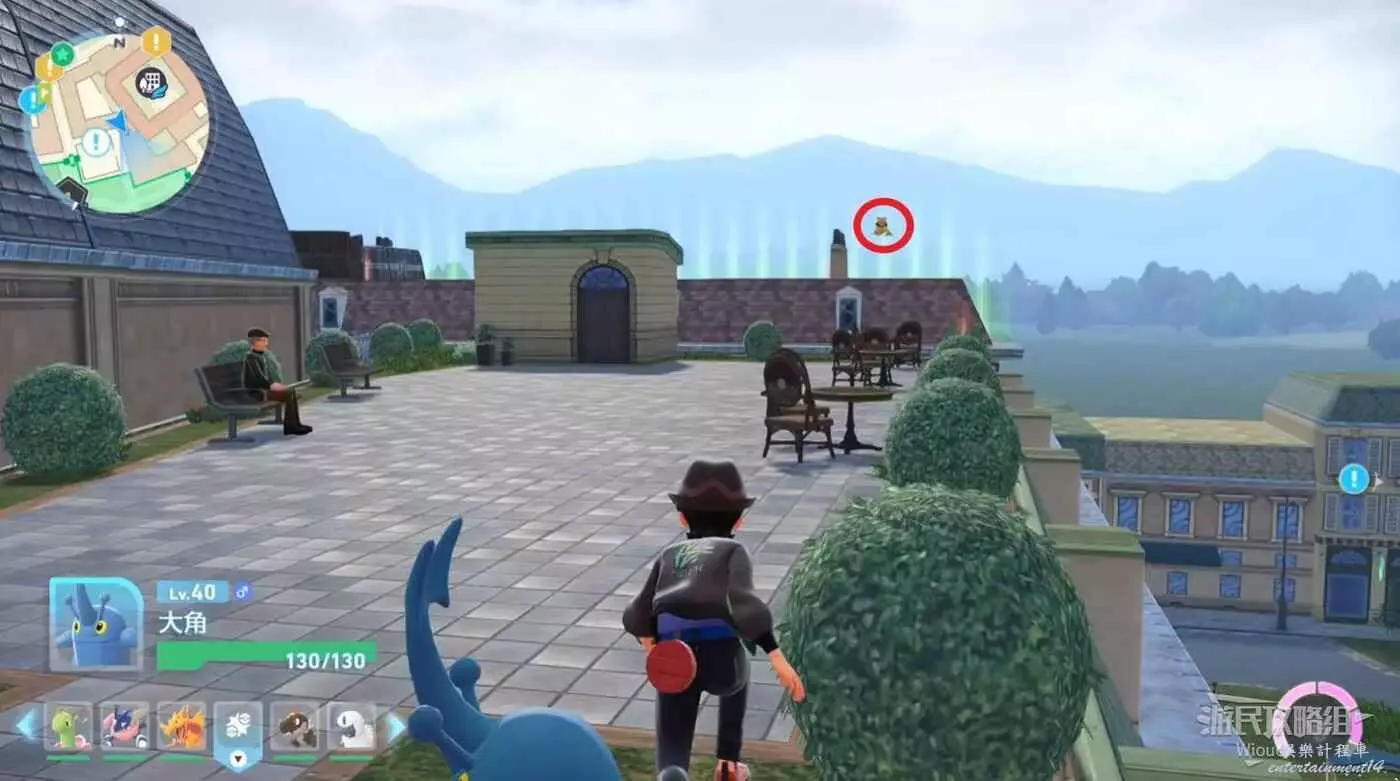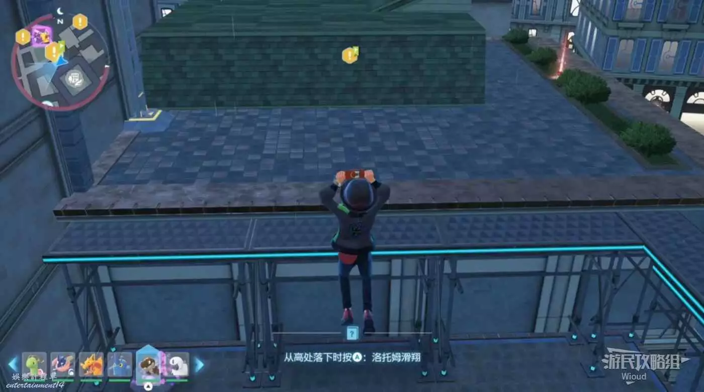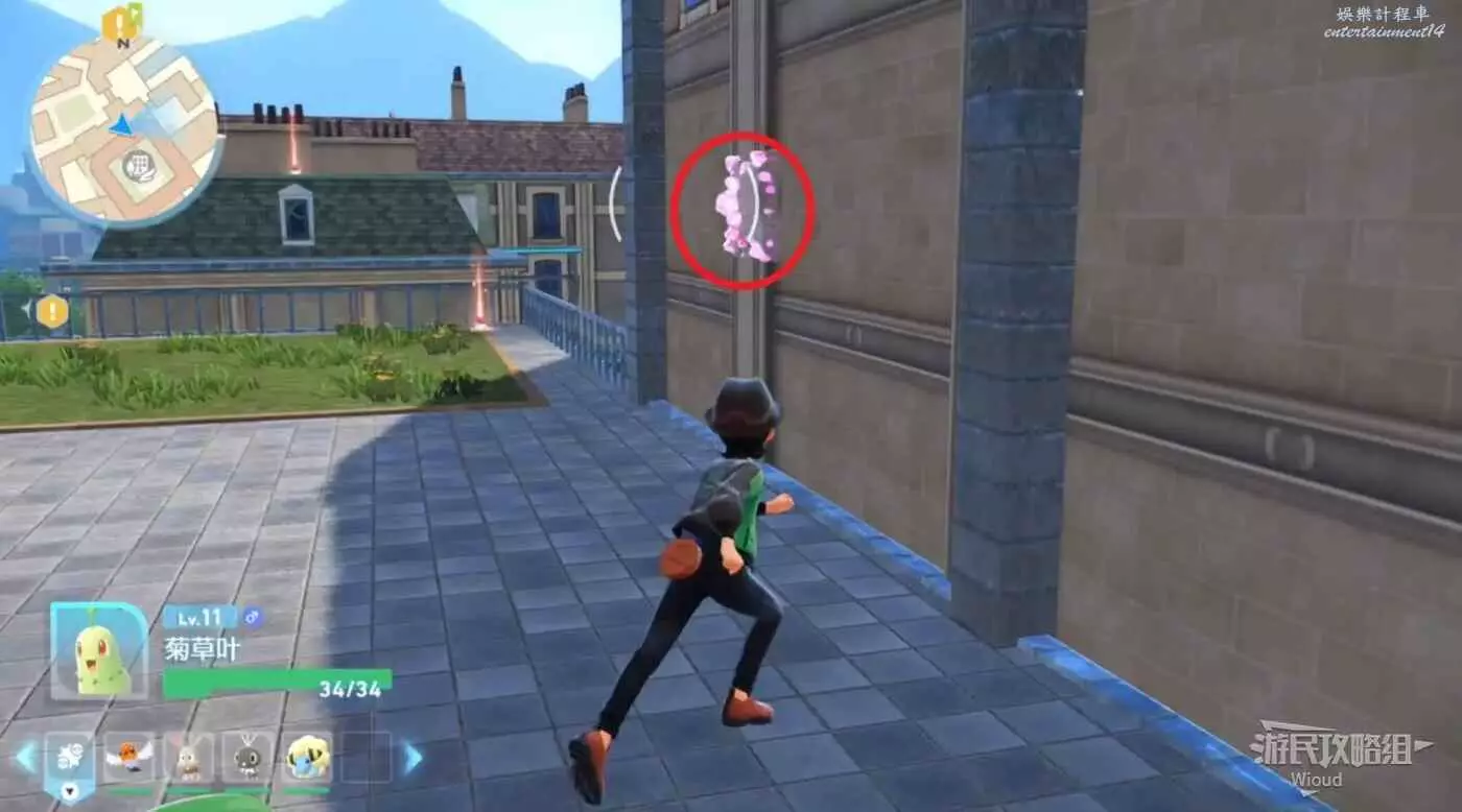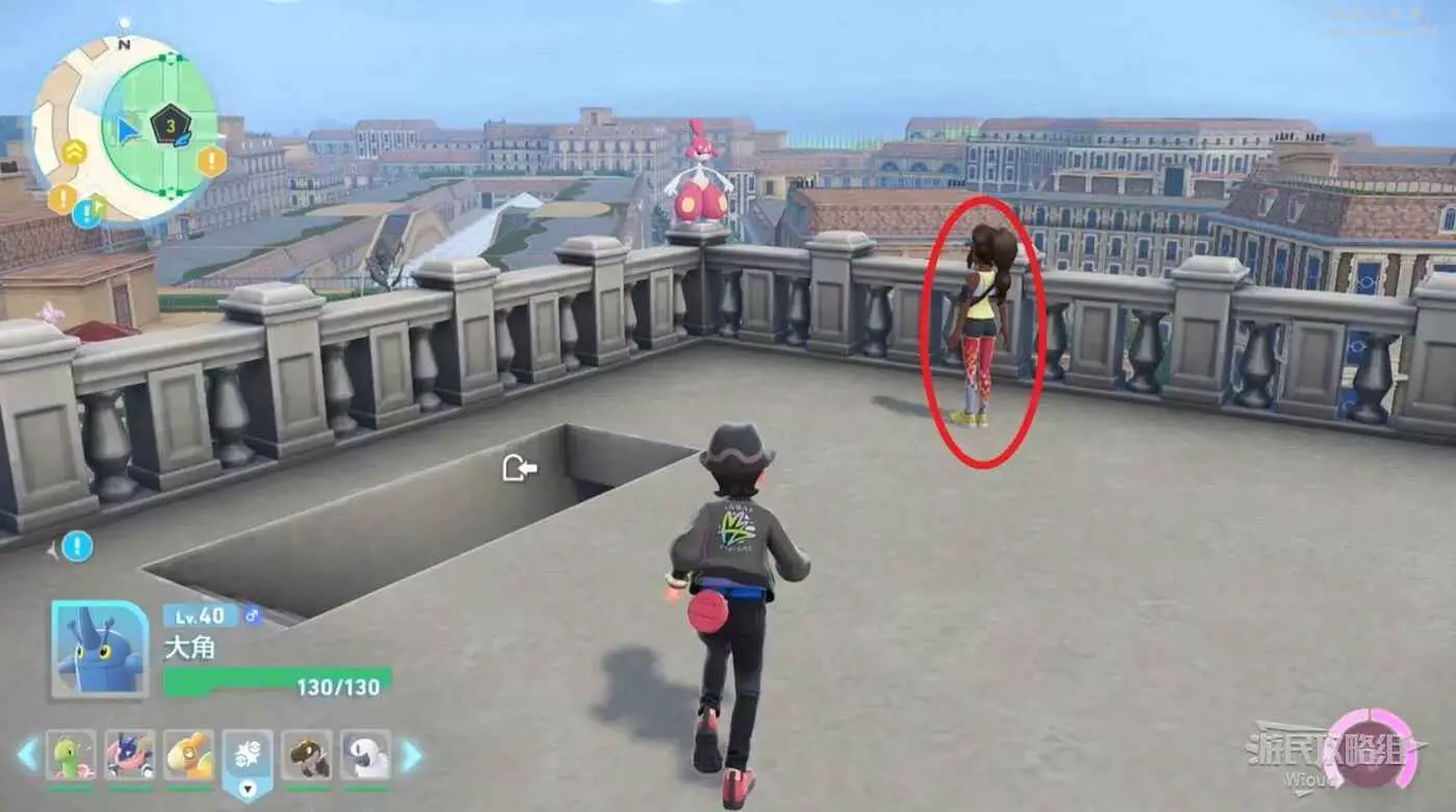 先和屋頂的【玳蘿】對話,然後爬右側小屋的梯子再過橋,不遠處看到失控寶可夢。