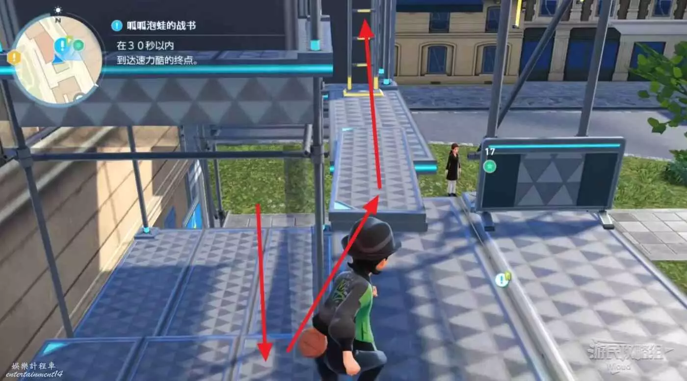 獲得戰鬥勝利完成任務,並解鎖旁邊的裝置,可以直接跳到樓頂。
